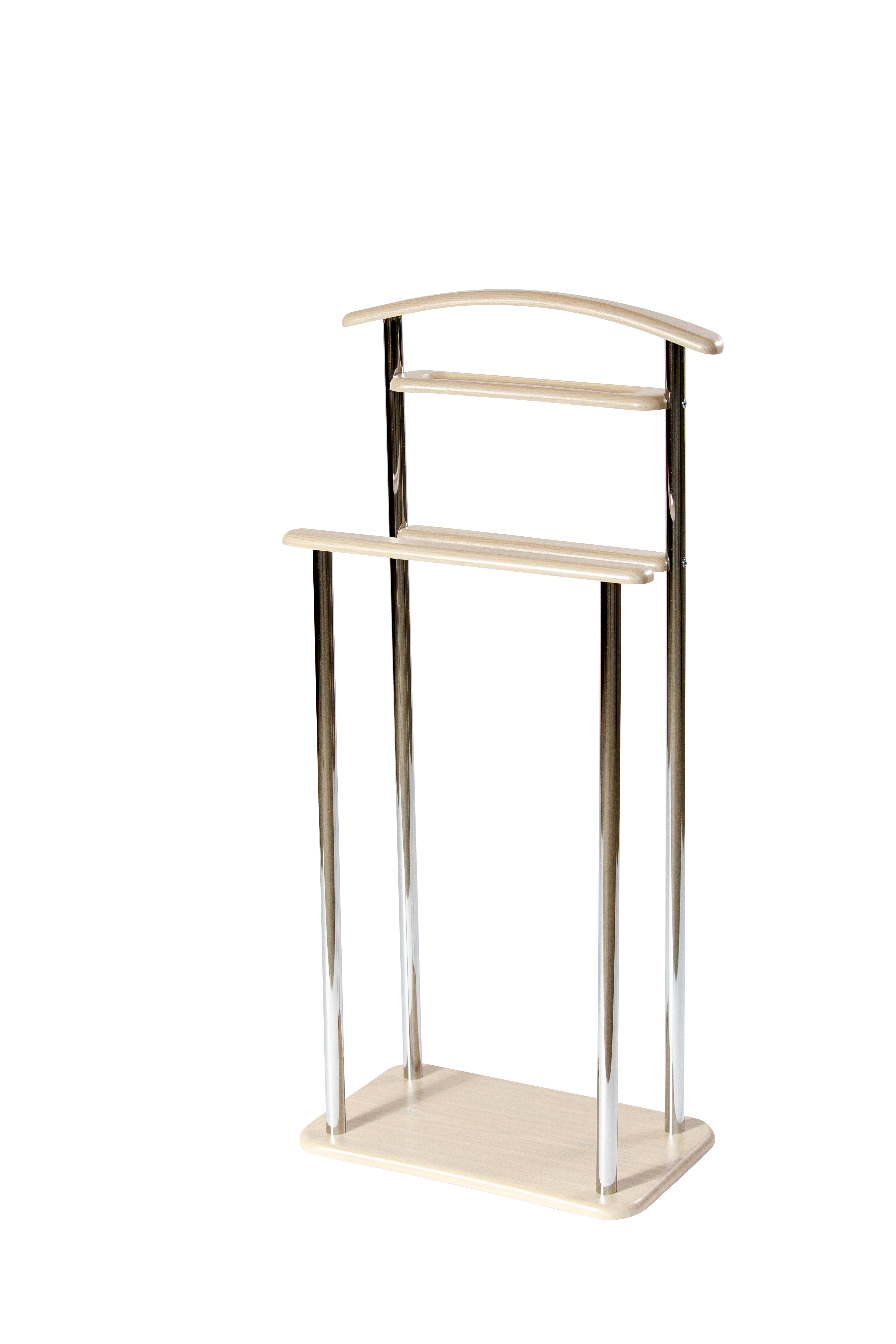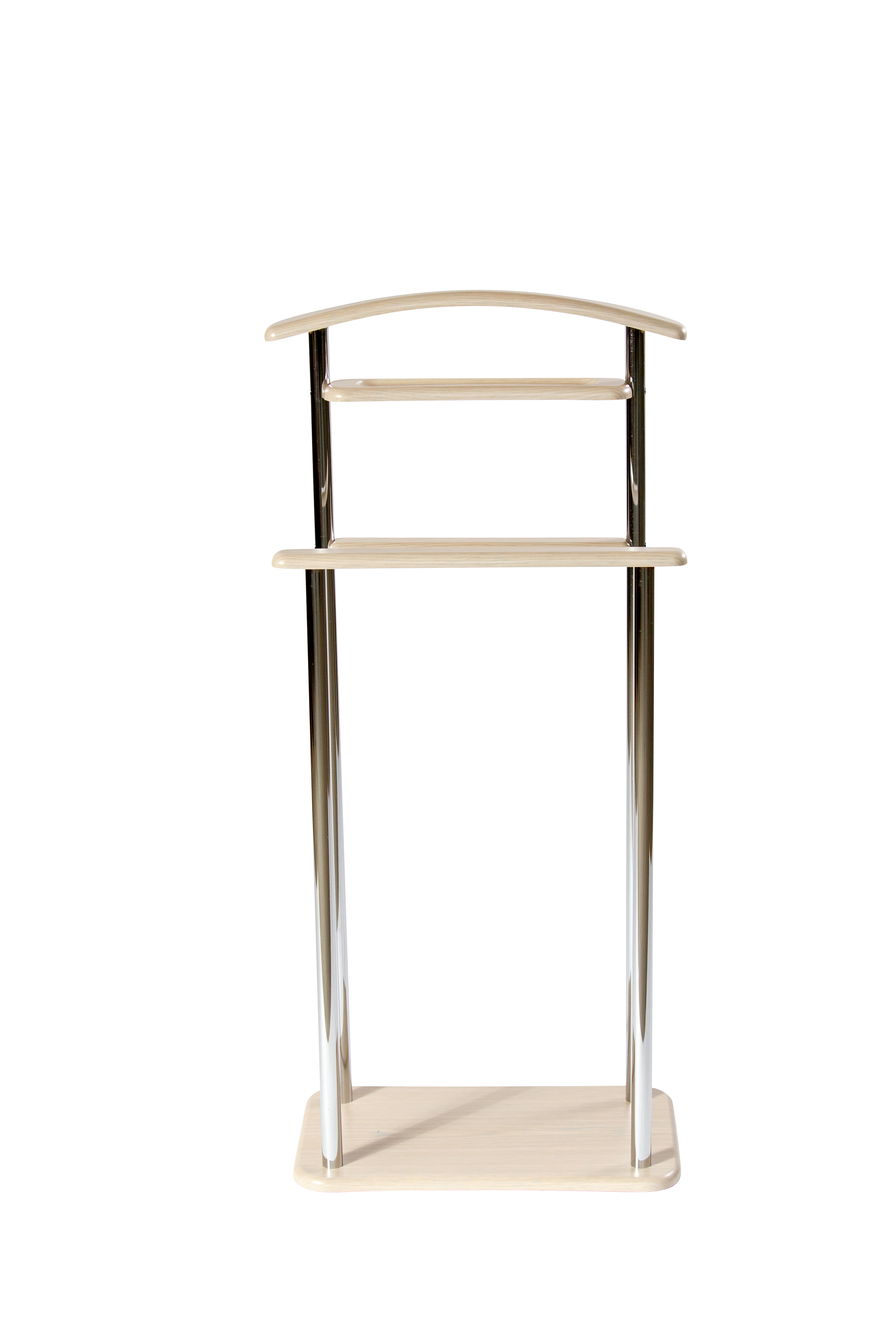 Костюмная вешалка "Элдридж"- современная и функциональная. Благодаря наличию двух планок для брюк и полочки для аксессуаров- данный вариант вешалки костюмной отлично подойдет для аккуратного хранения вещей. Вешалка выполнена из материала МДФ 16 мм в сочетании с хромированной трубой. Высота вешалки1050 мм, ширина основания 295 мм, длина плечика 500 мм.