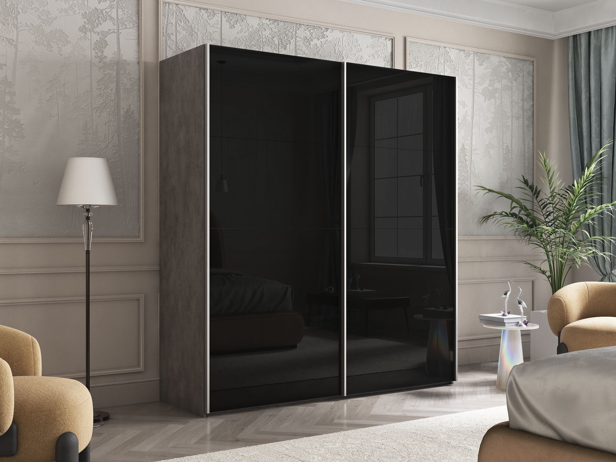 Отзывы о Столплит Шкаф Эста дуо Стекло черное 2400 х 2000 х 660 Бетон серый