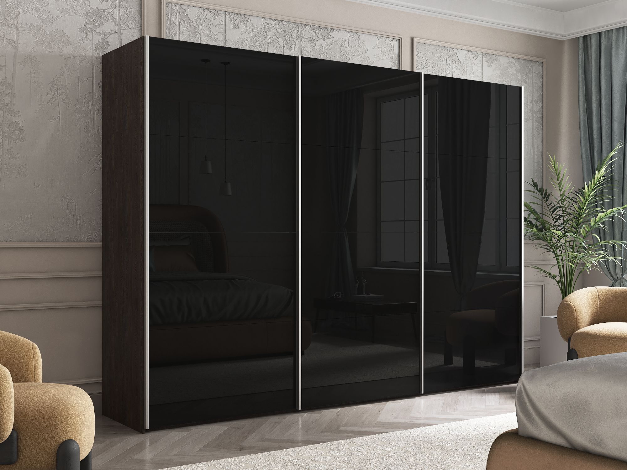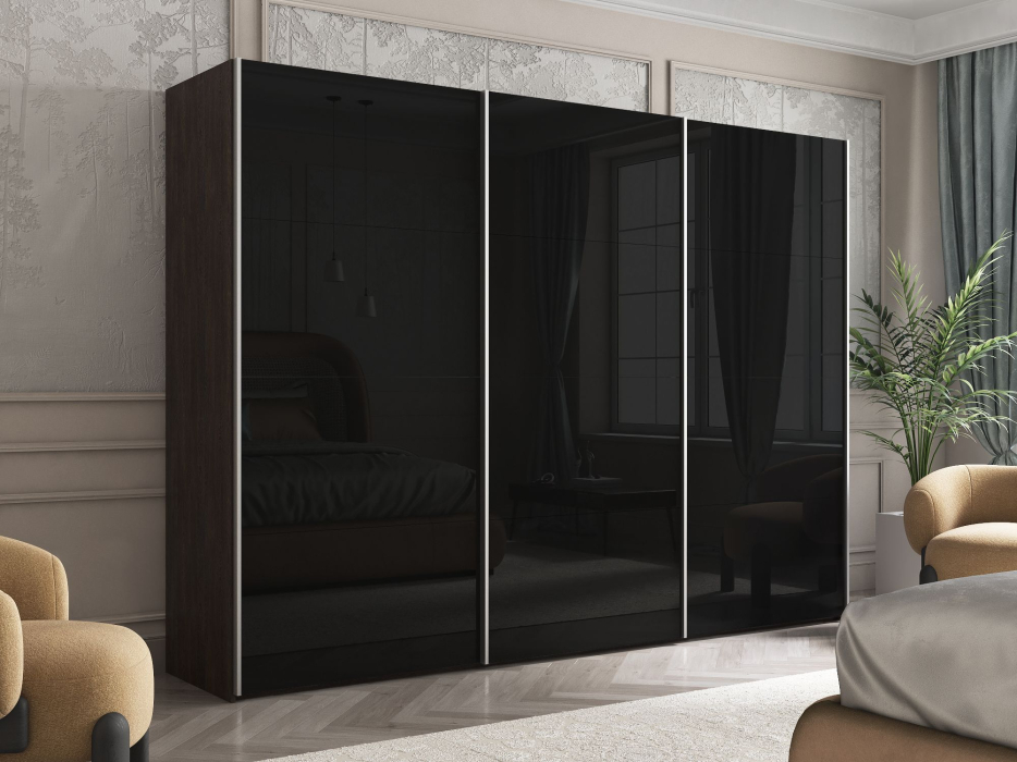 Отзывы о Столплит Шкаф Эста трио Стекло черное 2400 х 2700 х 660 Венге мали