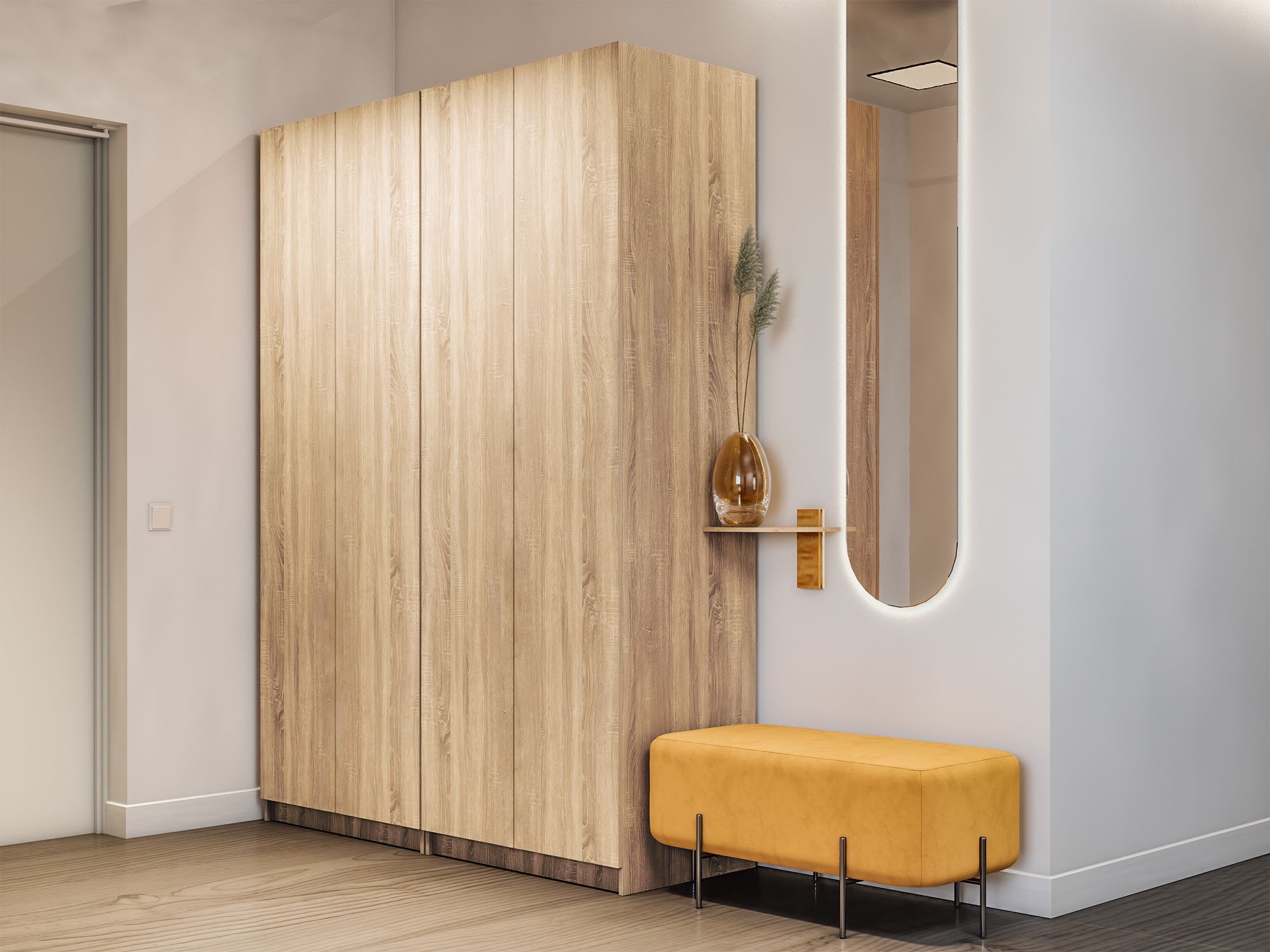 Отзывы о Столплит Распашной шкаф Локер 800+800 (Гармошка с системой Push to Move/Правый) с полками Дуб сонома