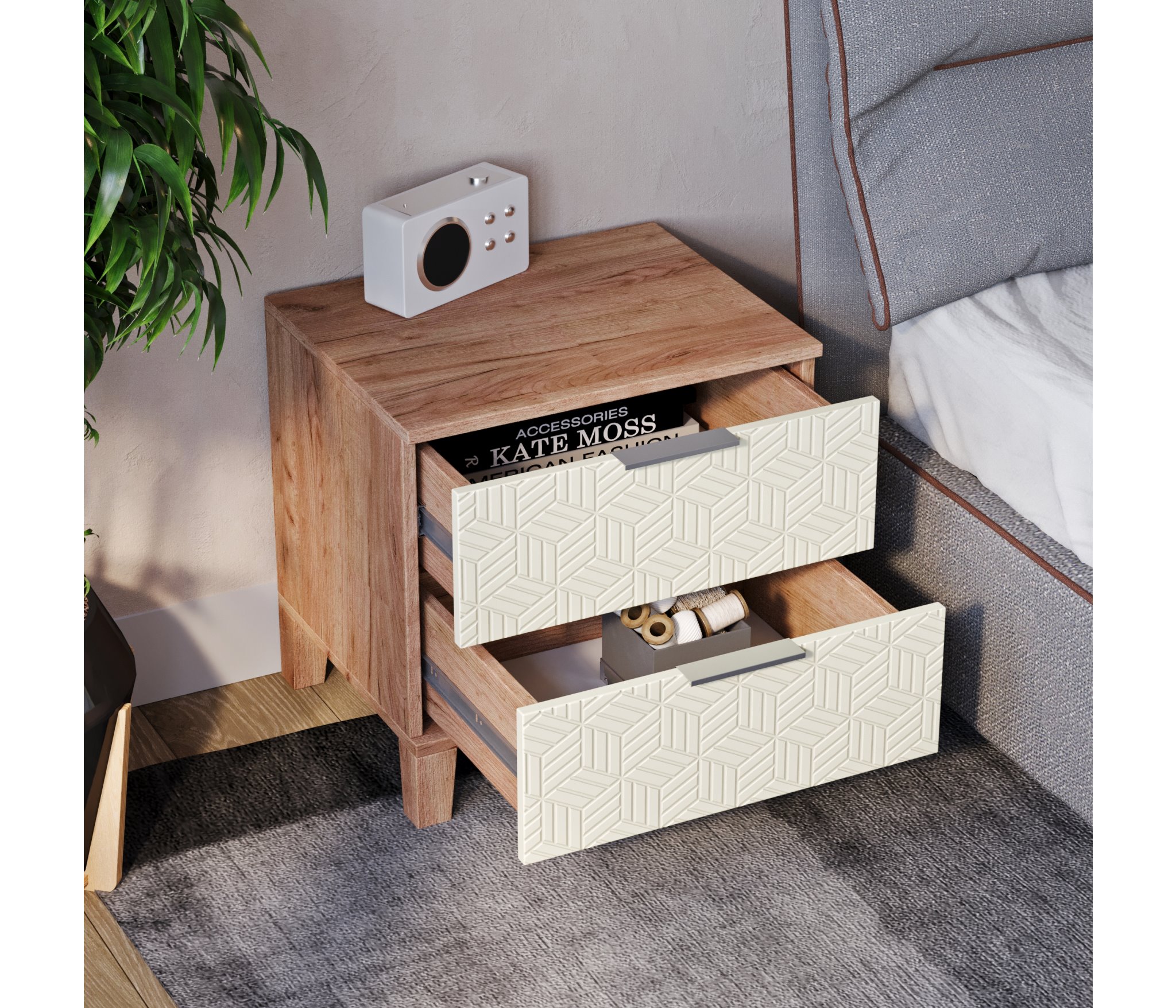 Тумба выполнена в скандинавском стиле, органично дополняет интерьер любой комнаты.