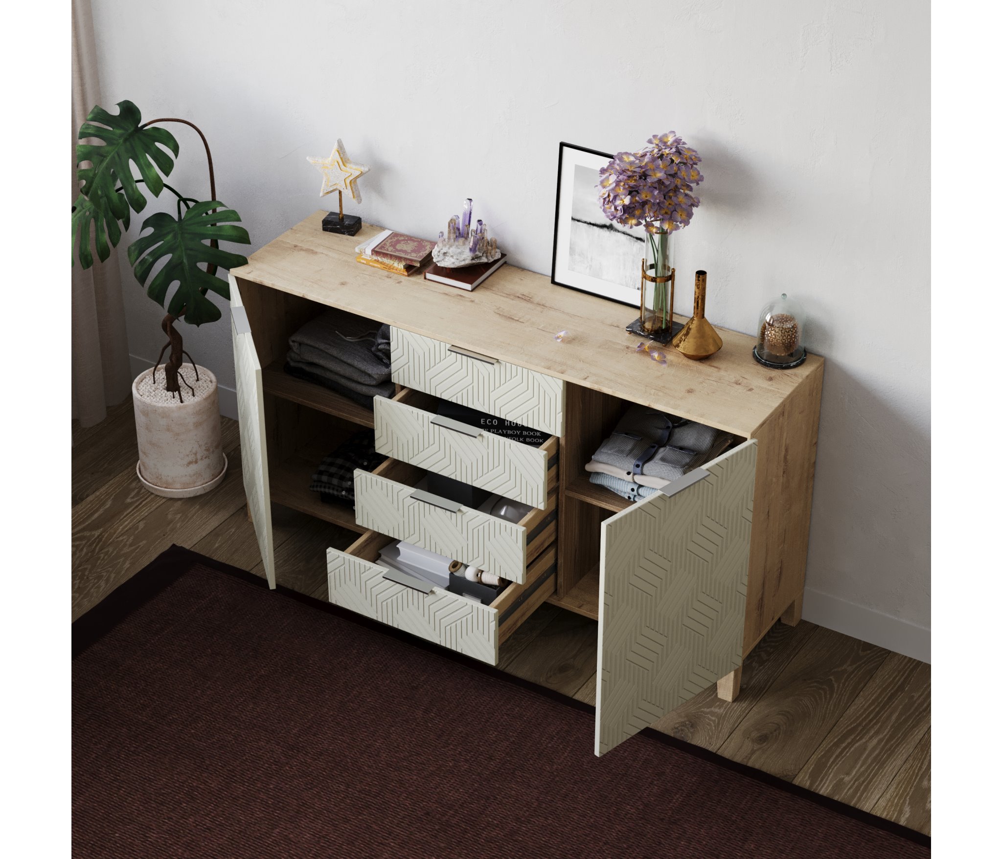 Качествееные материалы и отличная фурнитура дадут гарантию долговечности.Данная мебель является не только прекрасным модулем для хранения различных вещей, но и станет украшением вашего интерьера.