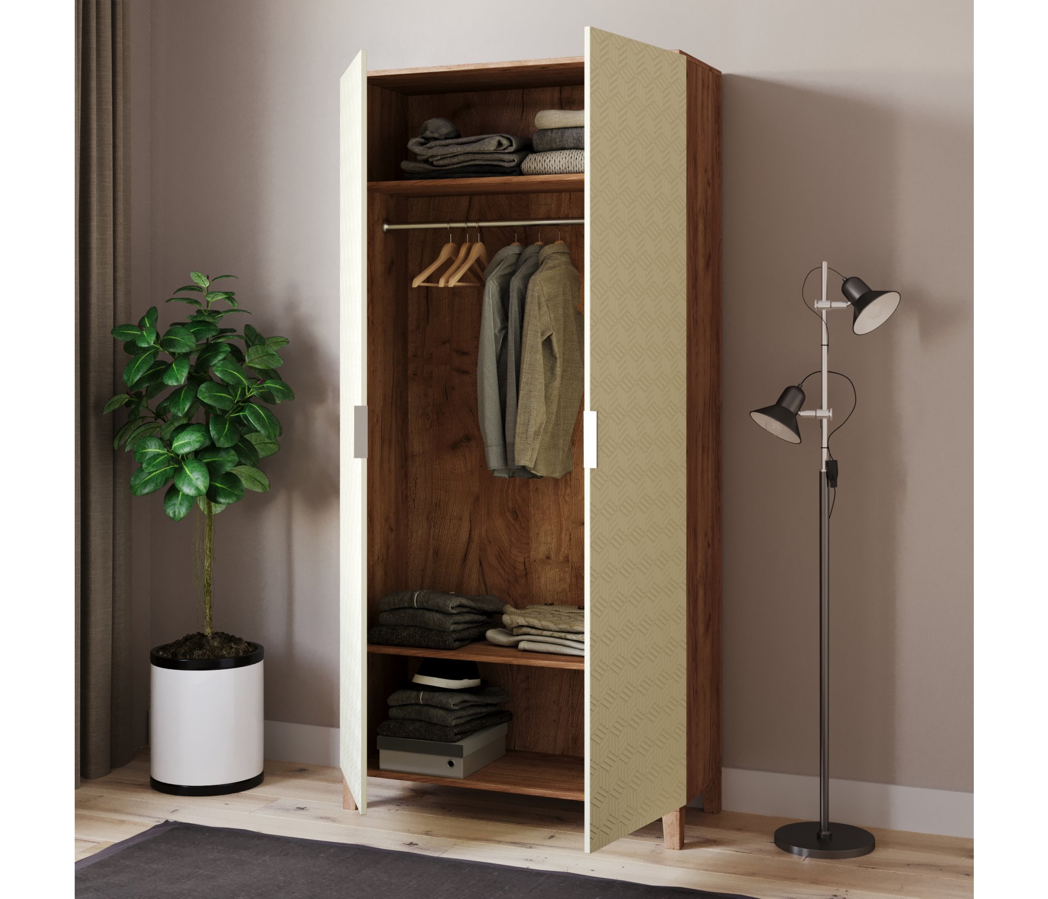 Шкаф распашной Марвин 2 (Бежевый) Код I0000394229