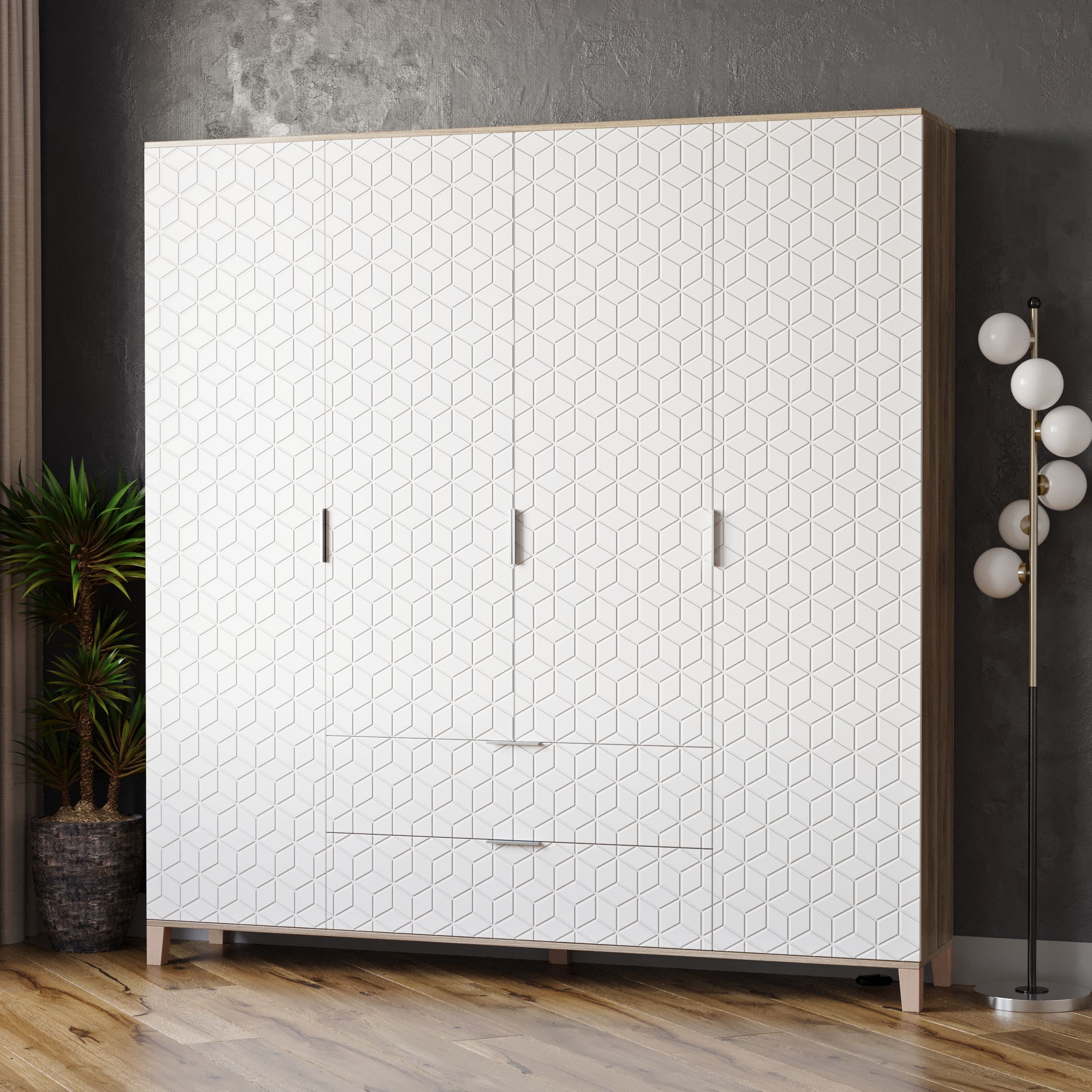 Шкафы Марвин, выполненные в скандинавском стиле, органично дополнят интерьер любой комнаты. Ножки из массива бука, геометрическая фрезеровка на фасадах, сочетание цветов отличительная черта серии Шкафов Марвин.