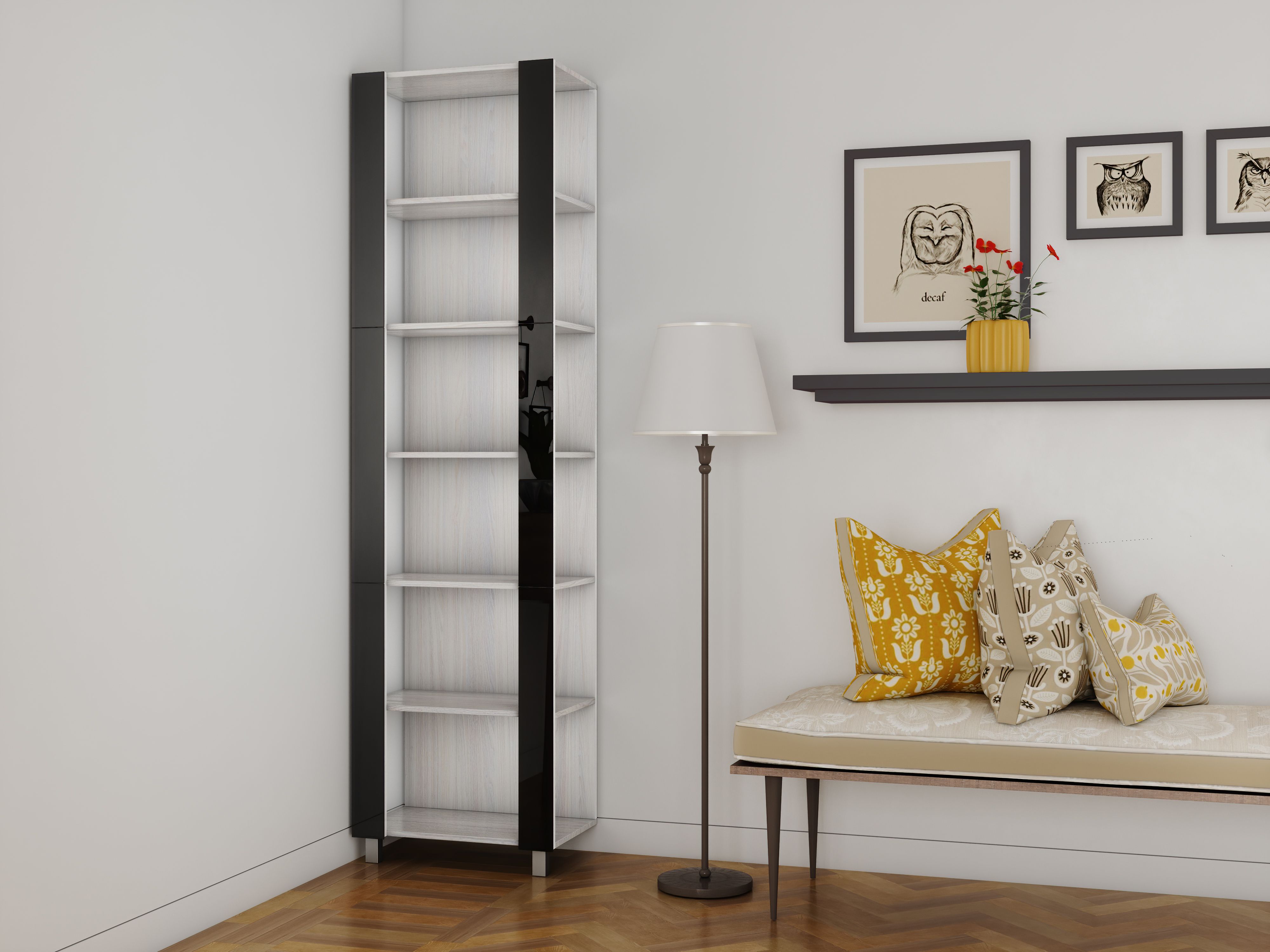 Отзывы о Столплит Стеллаж модульный Универсальный 35х44х220 Черное стекло Ясень Анкор светлый