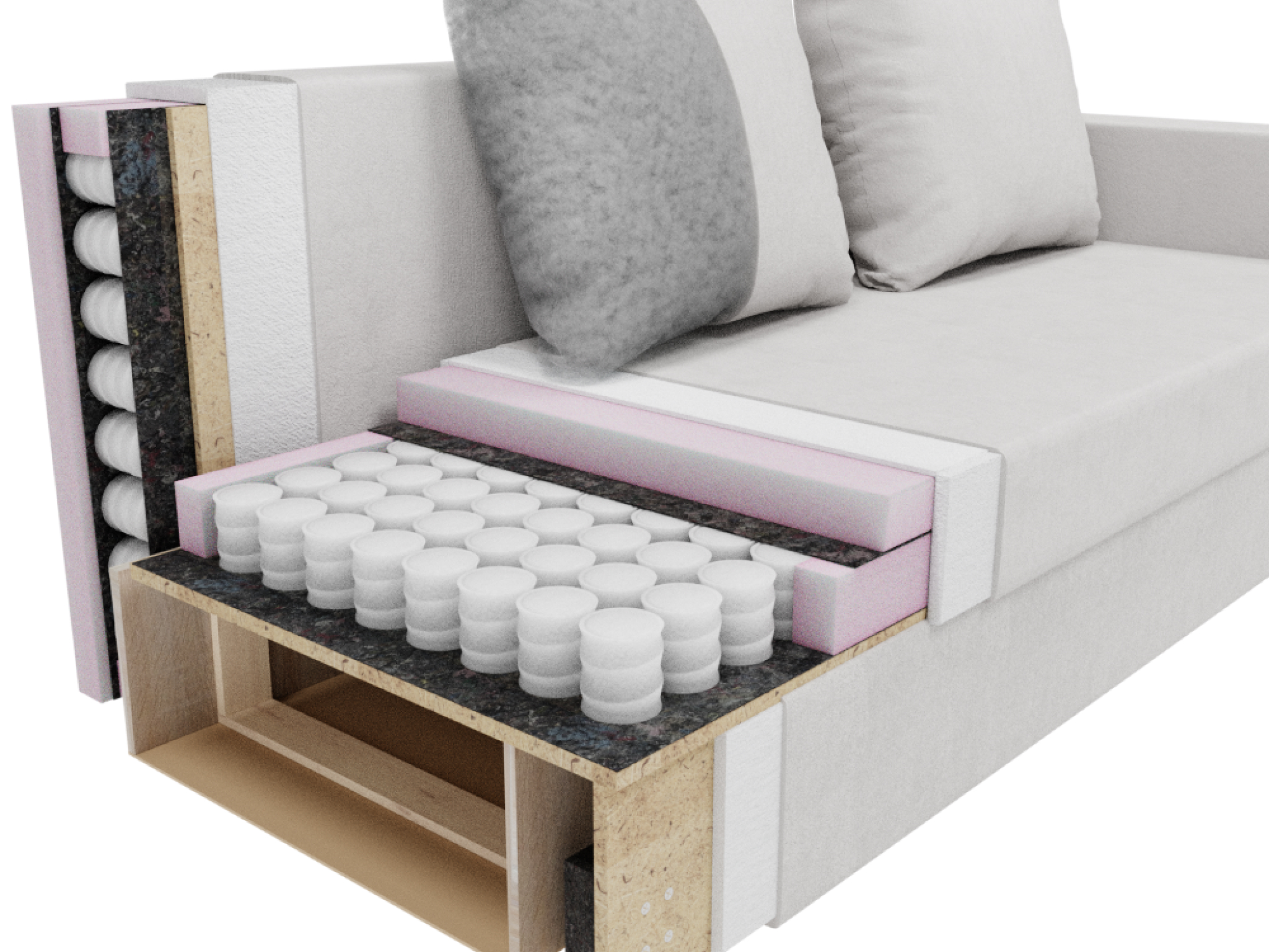 Наполнитель - пенополиуретан, который обеспечивает мягкость и комфорт при сидении. Каркас выполнен из ДВП, ЛДСП и массива дерева, что гарантирует прочность и долговечность изделия.