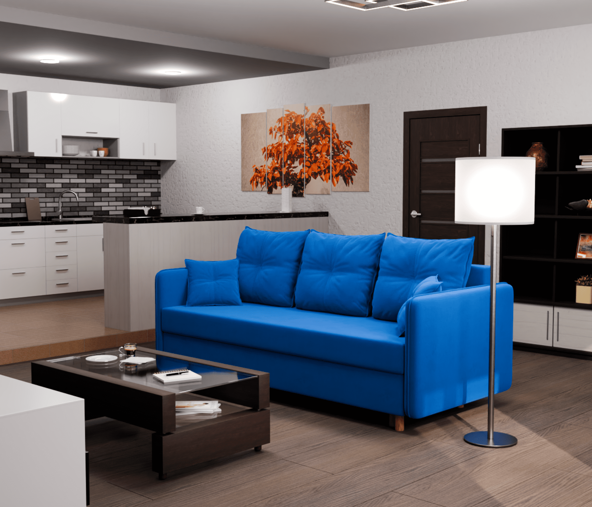 - Раскладной механизм позволяет быстро и без проблем превратить диван в удобную кровать.