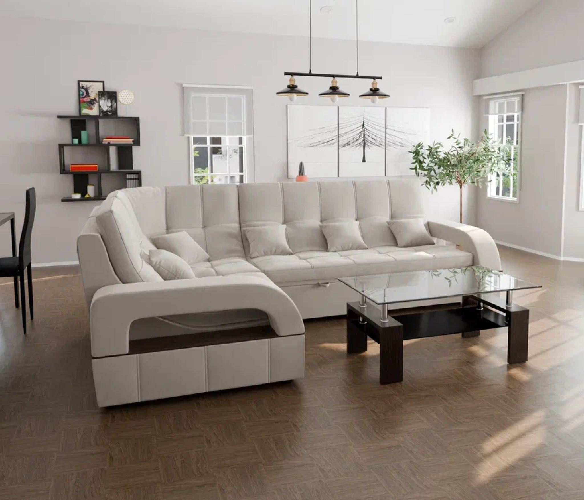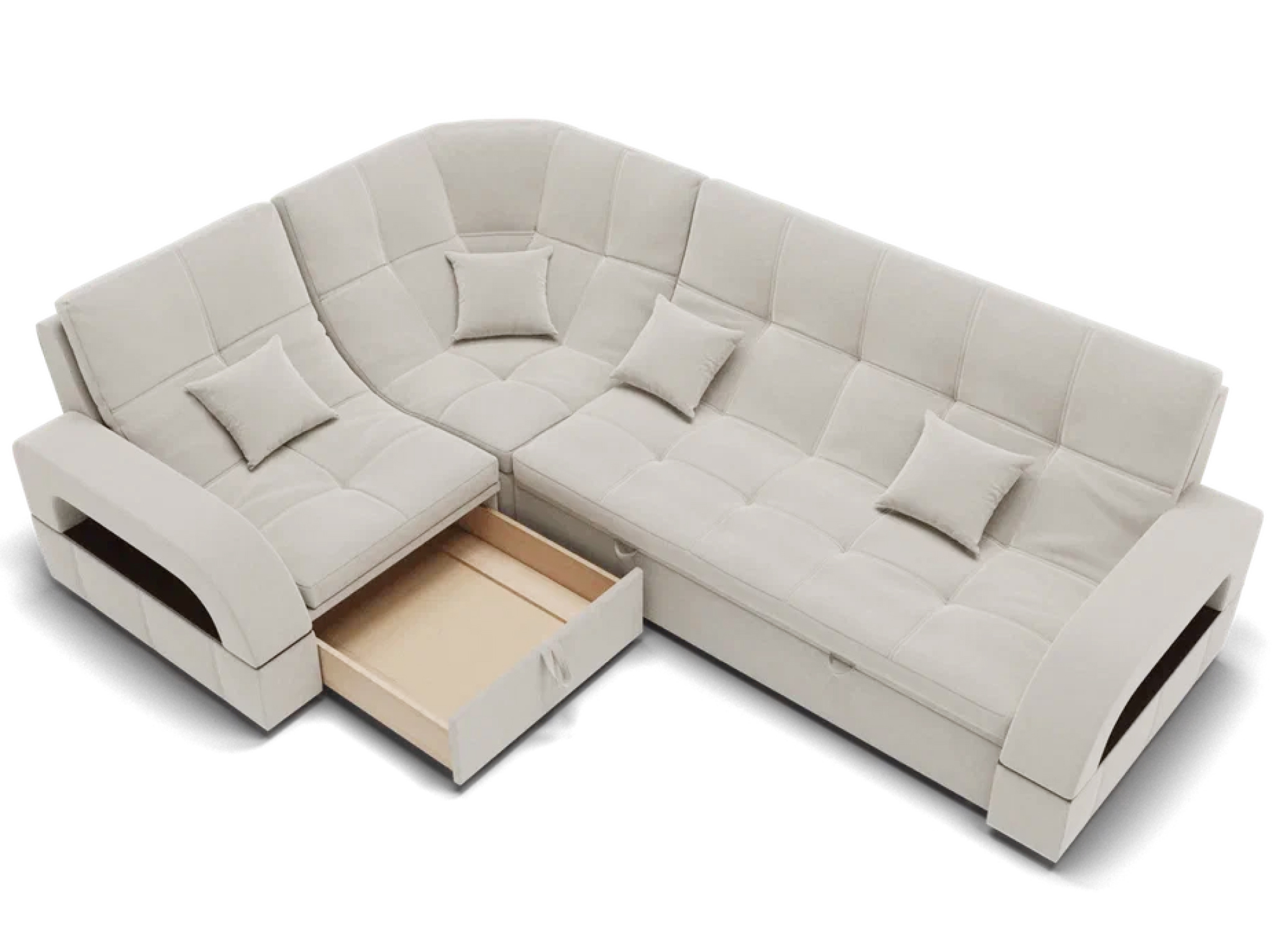 Модульный диван "Майами-3" от YORCOM - это отличный выбор для тех, кто ищет комфортабельный и стильный диван для своего дома. Этот диван выполнен из велюра белого цвета, который придает ему элегантный и современный вид.