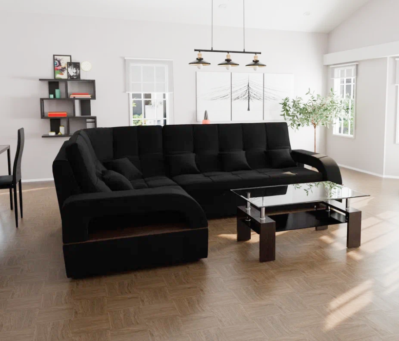 Отзывы о Столплит Модульный диван Майами-3,микровелюр,антивандальная ткань,венеция Real black (Черный)