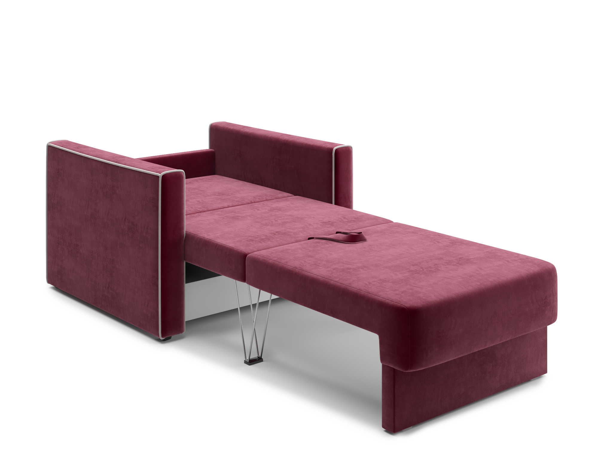 - Механизм раскладки трёхсекционная еврокнижка. В отличие от еврокнижки, спальное место у такого дивана образуется поперёк, а не вдоль сидячего места и состоит из трёх частей. Благодаря такой конструкции габариты дивана в ширину могут быть значительно меньше, чем у еврокнижки, что актуально при планировании расстановки мебели в зависимости от размеров помещения. Под сиденьем дивана находится короб для хранения вещей и постельных принадлежностей.