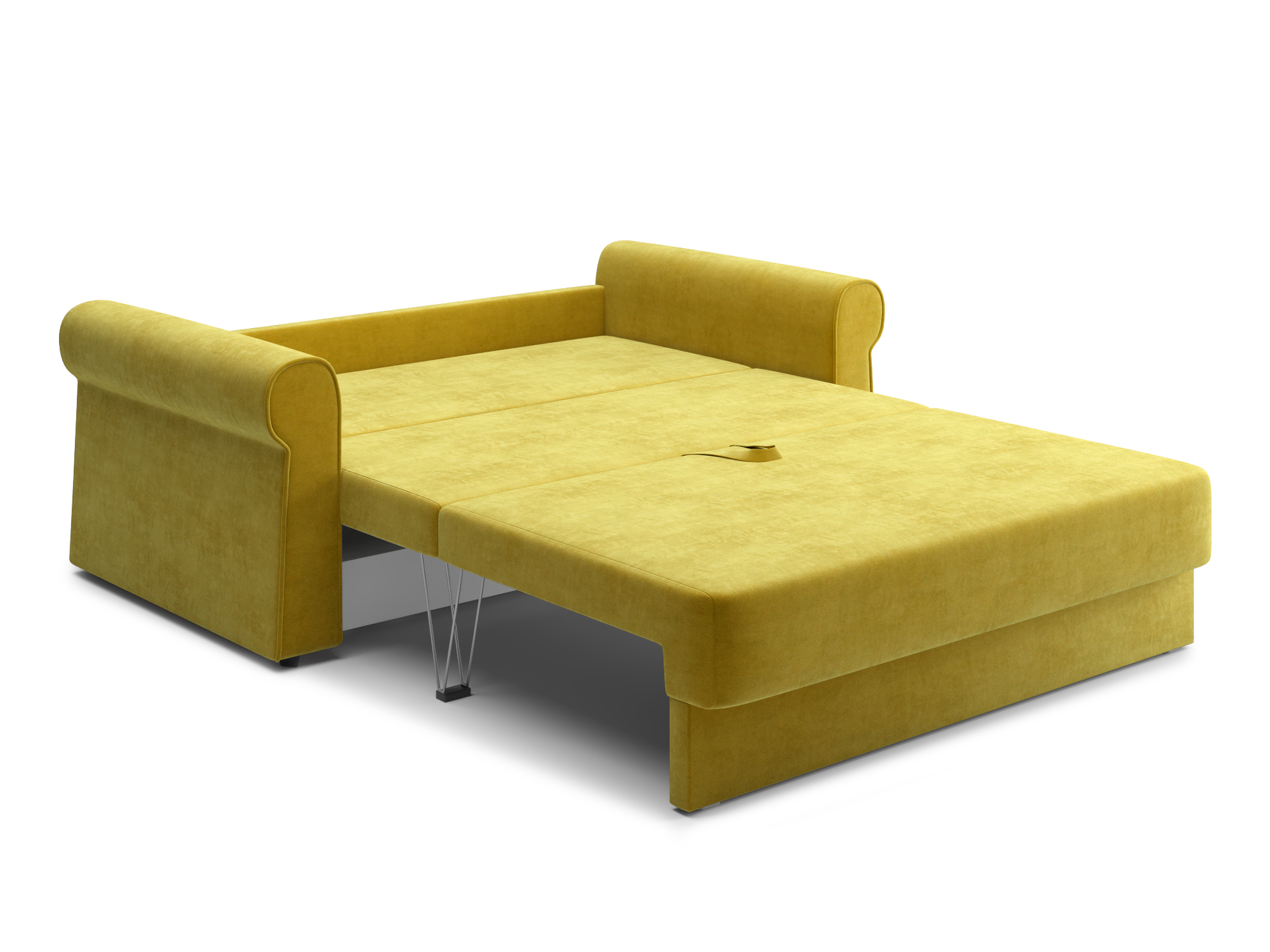 - Механизм раскладки трёхсекционная еврокнижка. В отличие от еврокнижки, спальное место у такого дивана образуется поперёк, а не вдоль сидячего места и состоит из трёх частей. Благодаря такой конструкции габариты дивана в ширину могут быть значительно меньше, чем у еврокнижки, что актуально при планировании расстановки мебели в зависимости от размеров помещения. Под сиденьем дивана находится короб для хранения вещей и постельных принадлежностей.