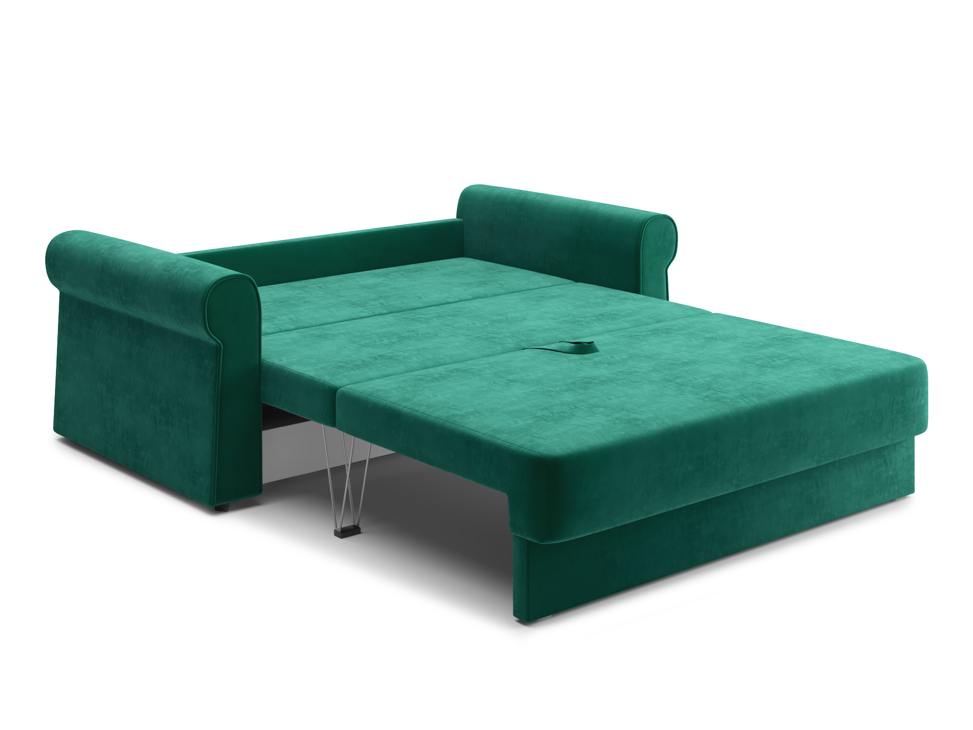 - Механизм раскладки трёхсекционная еврокнижка. В отличие от еврокнижки, спальное место у такого дивана образуется поперёк, а не вдоль сидячего места и состоит из трёх частей. Благодаря такой конструкции габариты дивана в ширину могут быть значительно меньше, чем у еврокнижки, что актуально при планировании расстановки мебели в зависимости от размеров помещения. Под сиденьем дивана находится короб для хранения вещей и постельных принадлежностей.