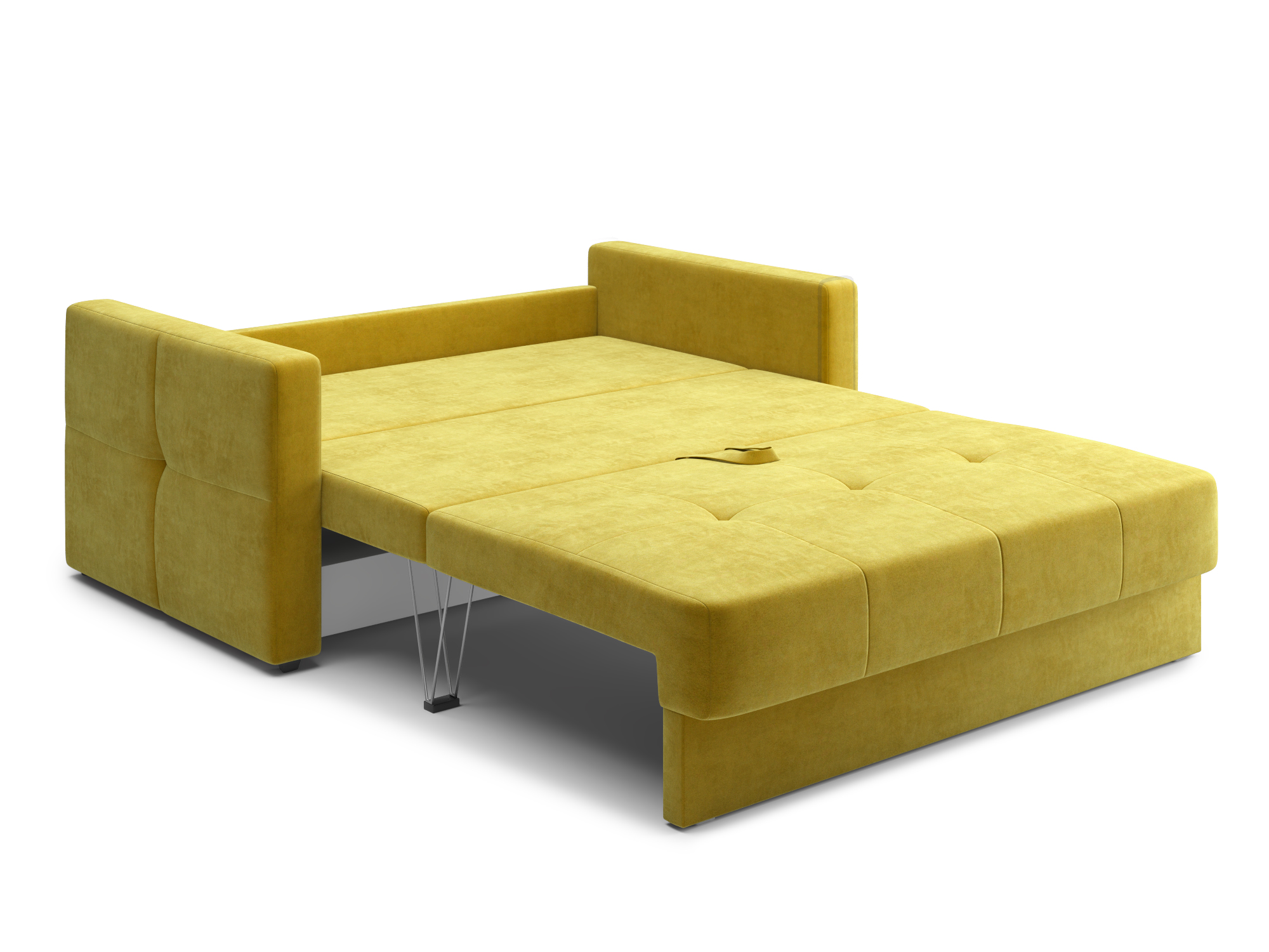 - Механизм раскладки трёхсекционная еврокнижка. В отличие от еврокнижки, спальное место у такого дивана образуется поперёк, а не вдоль сидячего места и состоит из трёх частей. Благодаря такой конструкции габариты дивана в ширину могут быть значительно меньше, чем у еврокнижки, что актуально при планировании расстановки мебели в зависимости от размеров помещения. Под сиденьем дивана находится короб для хранения вещей и постельных принадлежностей.