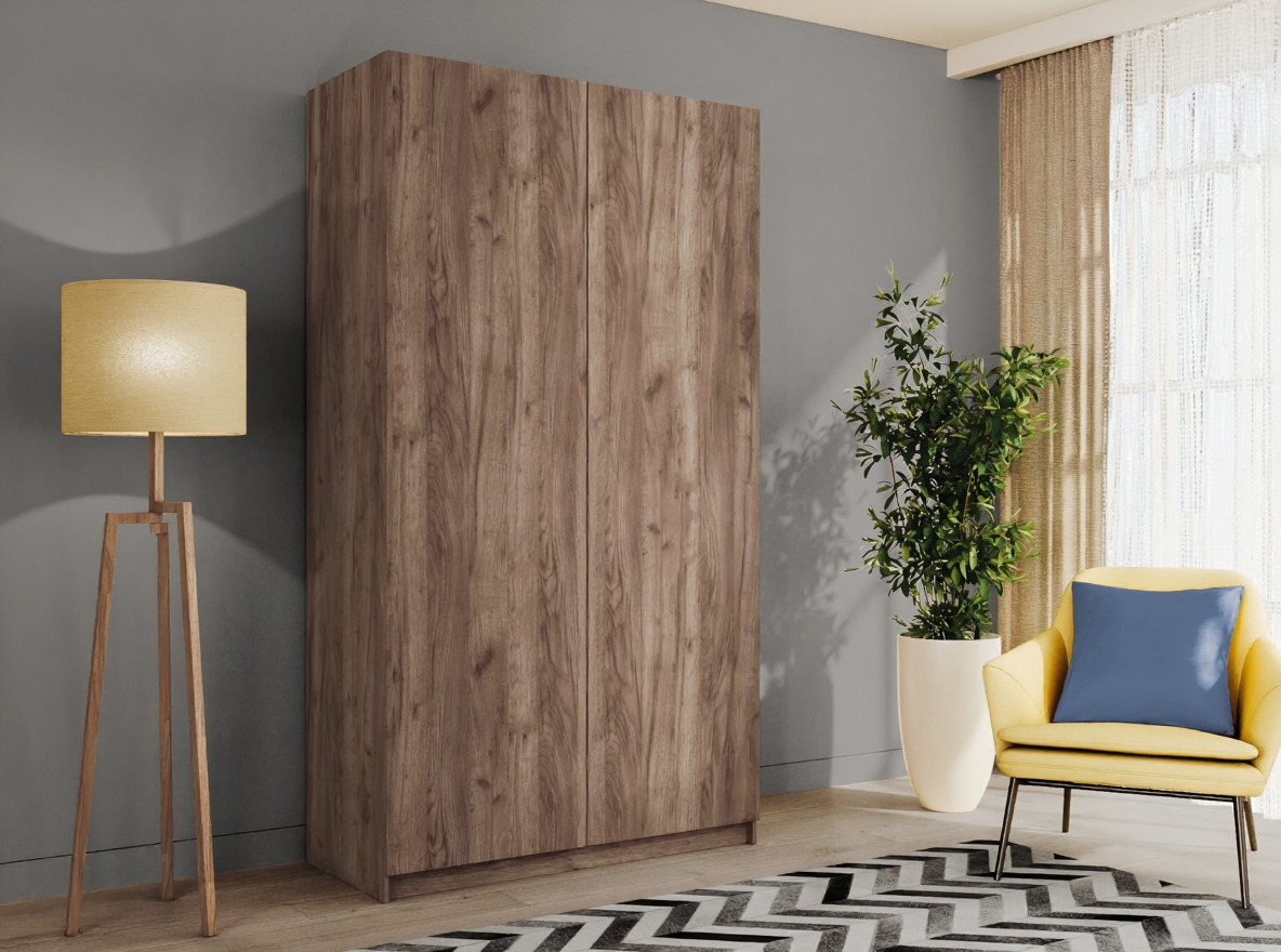 Благодаря надежным полкодержателям - штифтам, полки шкафа могут выдерживать до 15 кг, штанга выдерживает нагрузку до 60 кг. Вы сможете убрать сезонные вещи, постельное белье на верхние полки. Распашной шкаф оснащен долговечной, ударостойкой кромкой ПВХ, которая защищает его торцы от сколов и повреждений, что обеспечит вам комфортное и долгое использование гардероба. Распашная система дверей Titus B-Type обеспечивает надежное прилегание дверцы к корпусу шкафа и высокую износостойкость. Механизм не деформируется при значительных нагрузках и максимально практичен в эксплуатации. Шкаф оснащен удобной минималистичной ручкой, изготовленной из алюминия. В производстве используется безопасное ЛДСП международного класса Е1, что способствует безопасному использованию на протяжении всего срока эксплуатации.