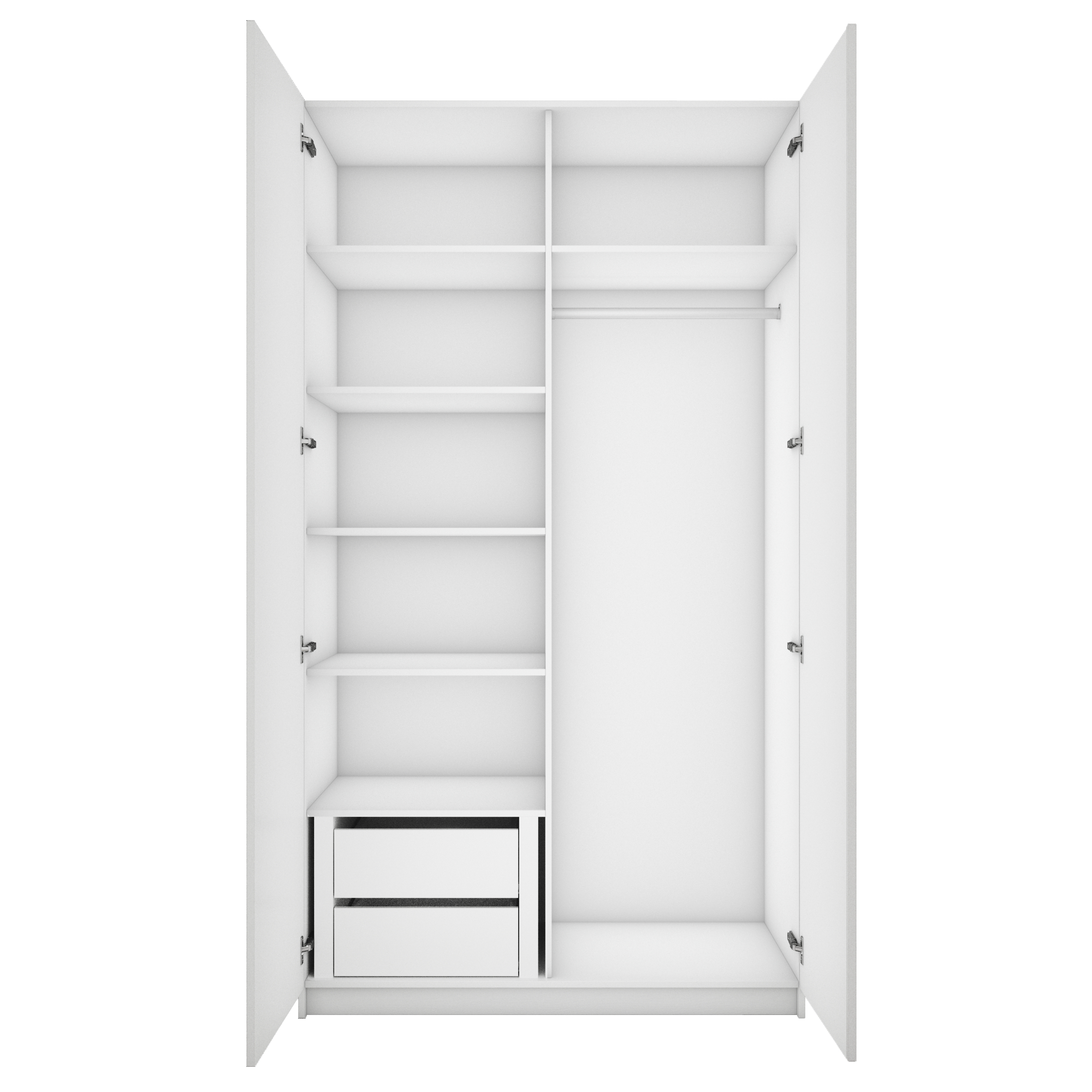 Благодаря надежным полкодержателям - штифтам, полки шкафа могут выдерживать до 15 кг, штанга выдерживает нагрузку до 60 кг. Вы сможете убрать сезонные вещи, постельное белье на верхние полки. Распашной шкаф оснащен долговечной, ударостойкой кромкой ПВХ, которая защищает его торцы от сколов и повреждений, что обеспечит вам комфортное и долгое использование гардероба. Распашная система дверей Titus B-Type обеспечивает надежное прилегание дверцы к корпусу шкафа и высокую износостойкость. Механизм не деформируется при значительных нагрузках и максимально практичен в эксплуатации. Шкаф оснащен удобной минималистичной ручкой, изготовленной из алюминия. В производстве используется безопасное ЛДСП международного класса Е1, что способствует безопасному использованию на протяжении всего срока эксплуатации.