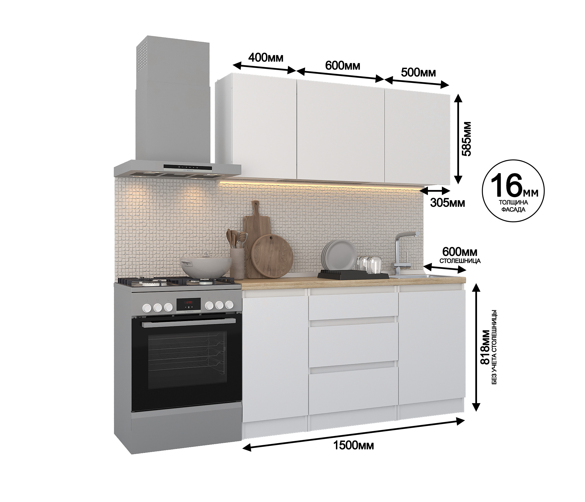 Отзывы о Столплит Кухонный гарнитур Леон прямой 150 см, белый