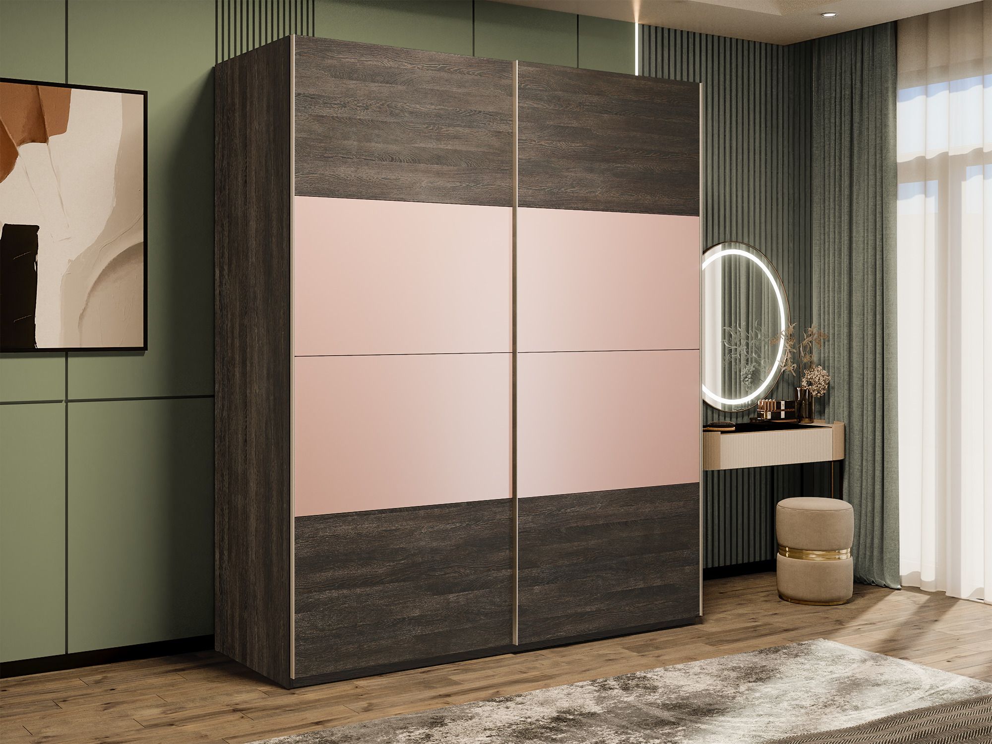 Шкаф-купе Эста 2-х дверный ДСП/Стекла пудра/Доводчик 200х66х240 (Венге мали) Код I0000408352