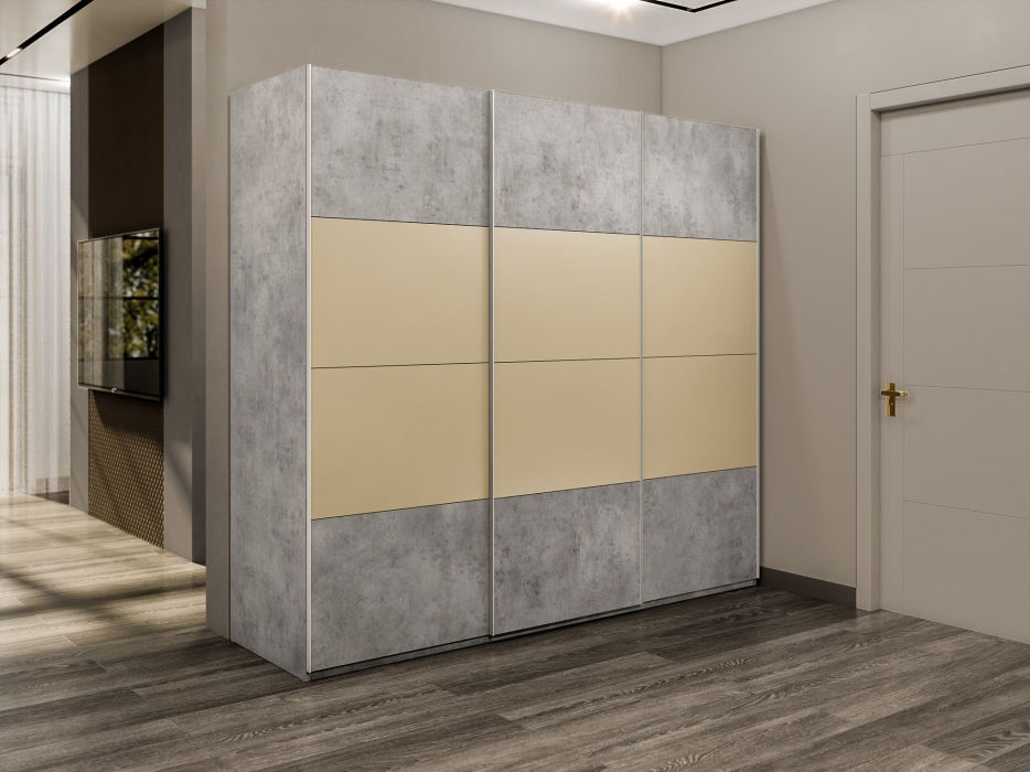 Отзывы о Столплит Шкаф-купе Эста 3-х дверный ДСП/Стекла фисташка/Доводчик 270х66х240 Бетон