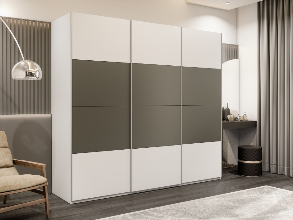 Отзывы о Столплит Шкаф-купе Эста 3-х дверный ДСП/Стекла хаки/Доводчик 300х66х240 Белый