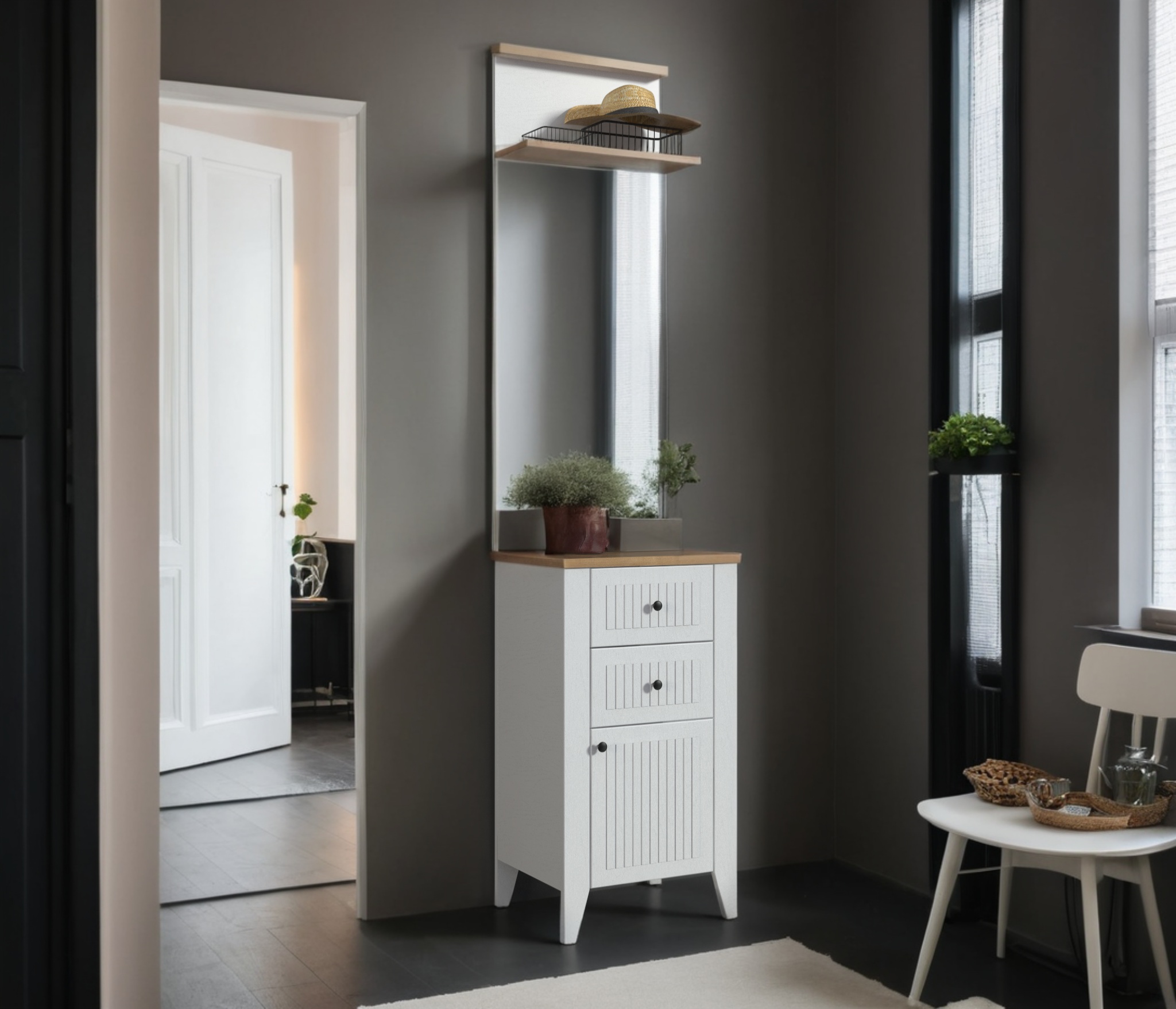 Материал корпуса: ЛДСП цвет Белый Альпийский, Дуб Гамильтон натуральный.