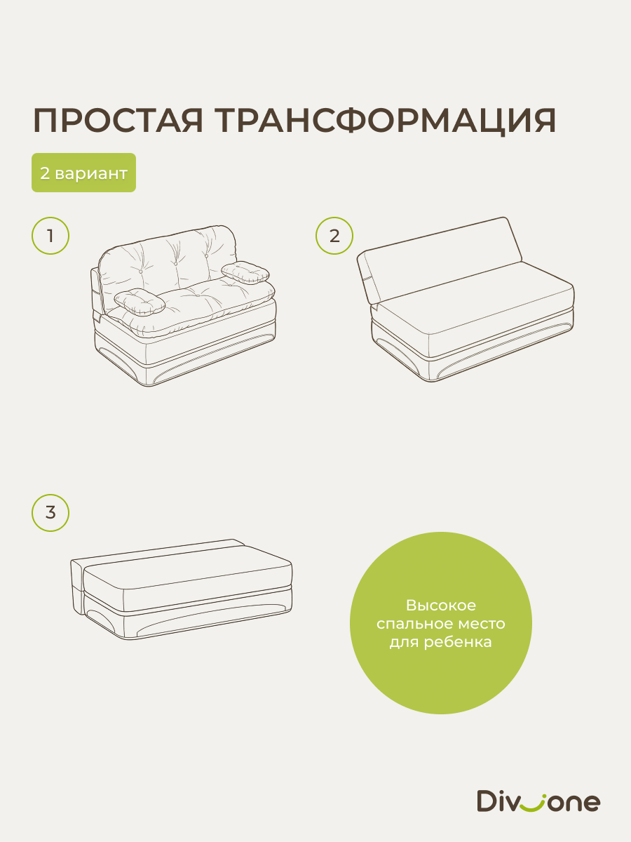 Мягкая обивка обеспечивает комфорт и удобство во время отдыха. Она выполнена из качественных материалов, которые легко чистятся и не выцветают со временем. Диванчик отлично подходит для сна благодаря своему ортопедическому эффекту и комфортному матрасу.