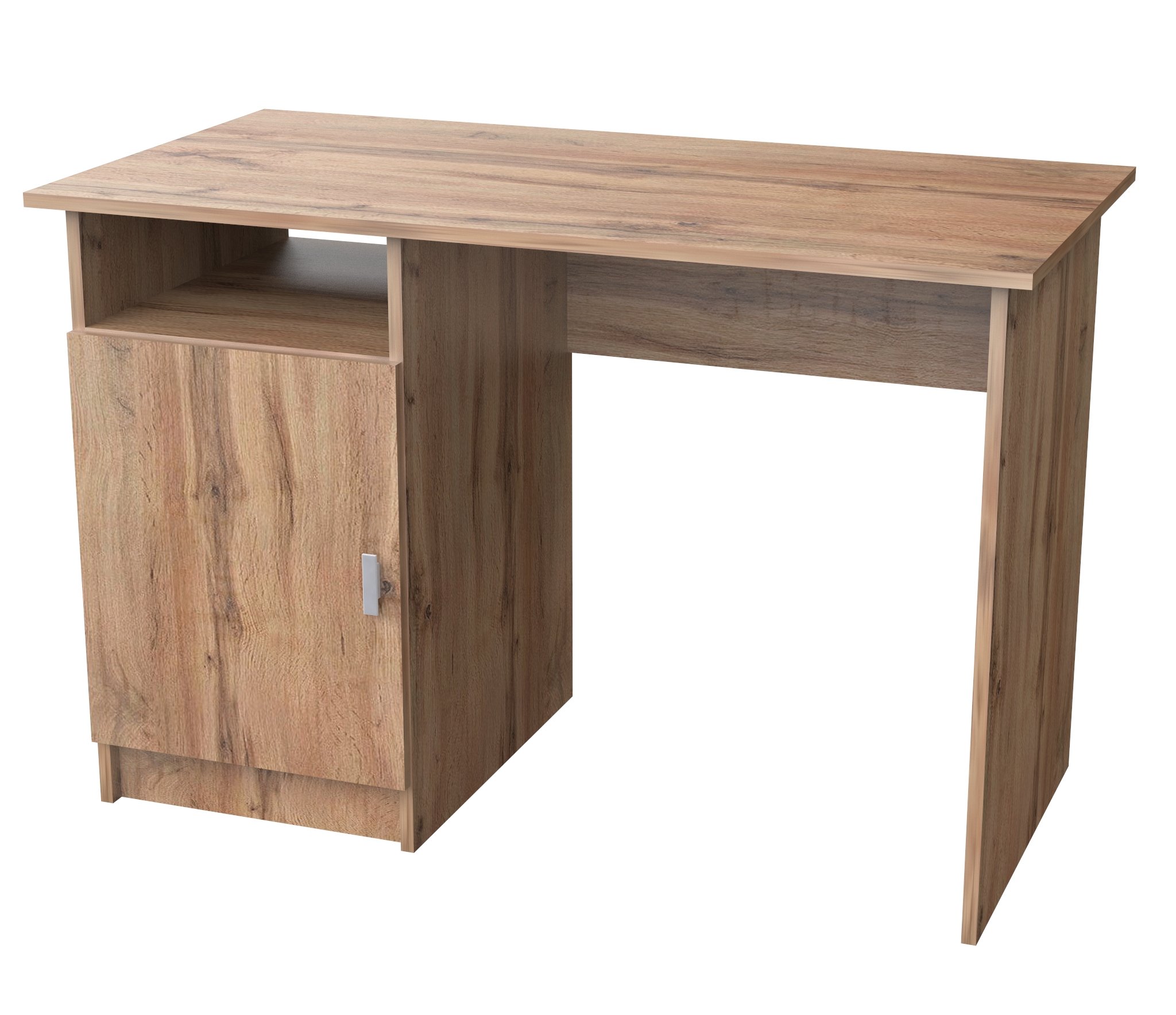 Стол СТ-1 изготовлен из ЛДСП.Оснащён тумбой с дверью,за дверцей полка съёмная).Ширина 110 см,Выс 75 см,глуб 57 см.Удобен в использовании как для кабинета,так и для школьников.