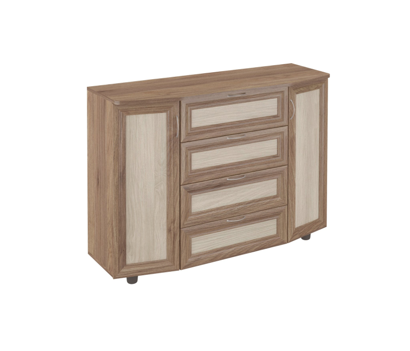 комод 1 отличается большими размерами и многофункциональностью.4-ре больших выдвижных ящика + 2 двери по бокам скрывают полки,позволяет разместить как крупные,так и мелкие вещи.Корпус ЛДСП,фасады рамочные МДФ.Оснащён пластиковыми ножками.Производитель оставляет за собой право менять фурнитуру.