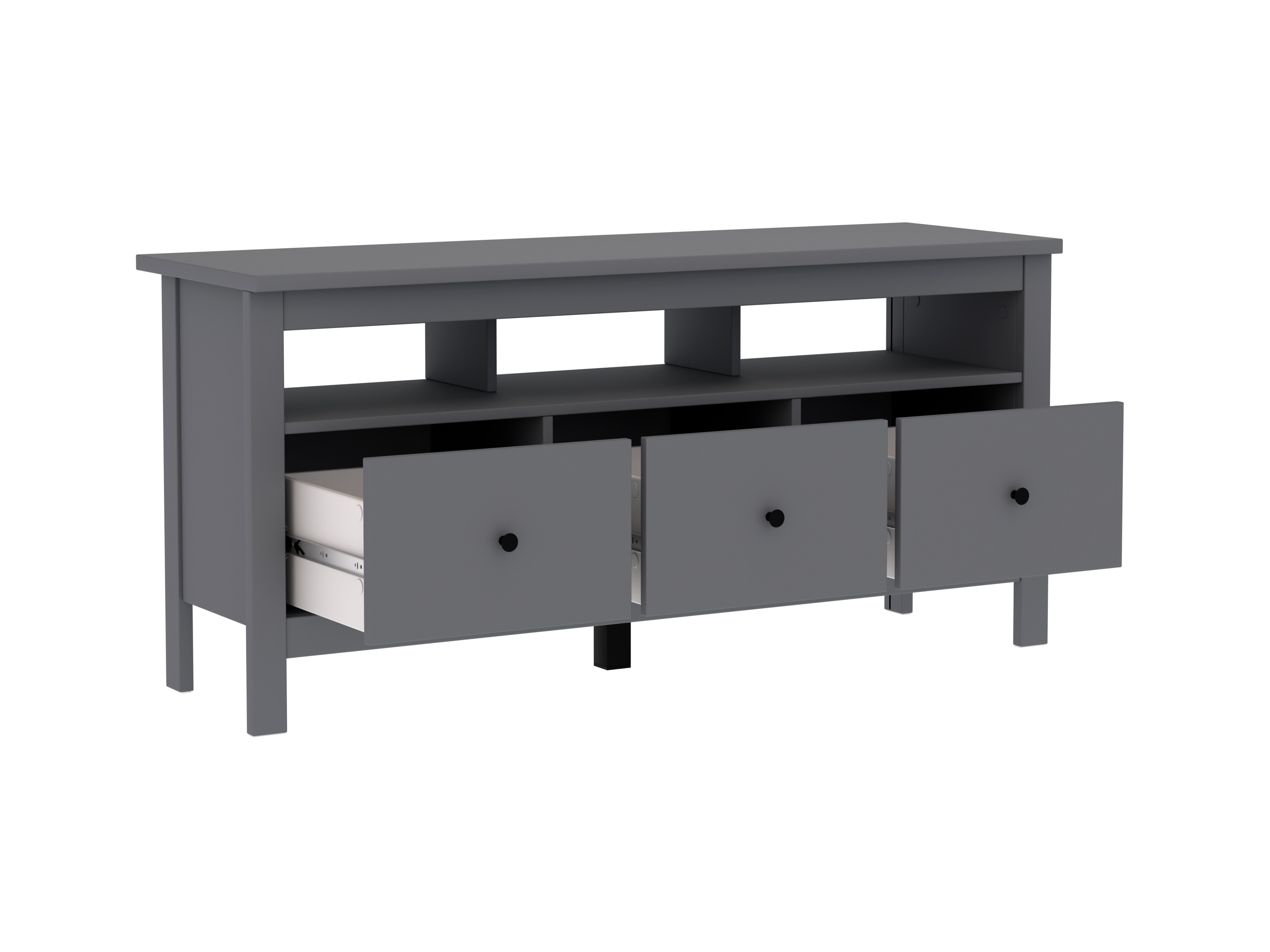 ТВ-тумба 3 ящика САГА , 1312х414х622. Серия мебели "Сага", выполненая в скандинавском стиле, лаконична и функциональна. Плавно закрывающиеся двери и ящики обеспечивают комфорт. Шариковые направляющие полного выдвижения делают ящики максимально удобными.