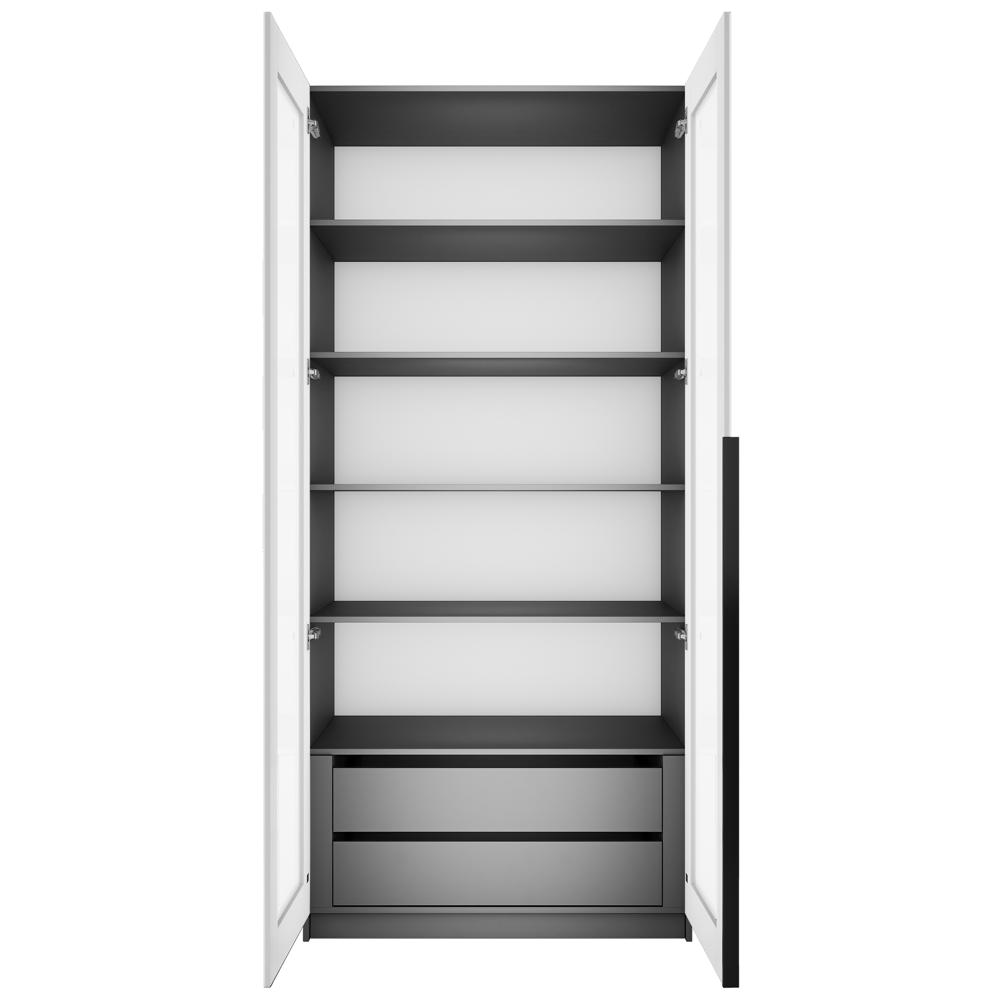 Шкаф распашной Е1 Локер 101x52.5x220 см, с белым стеклом , полками и модулем (Серый диамант)