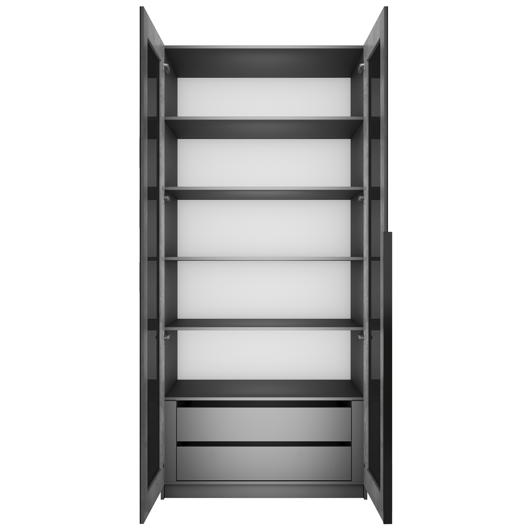 Шкаф распашной Е1 Локер 101x52.5x220 см, с черным стеклом , полками и модулем (Серый диамант)