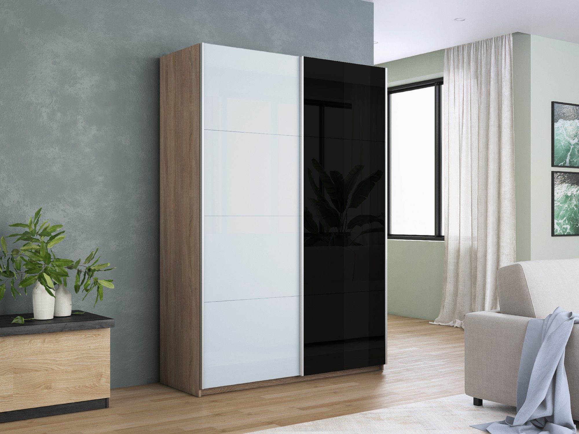 Отзывы о Столплит Шкаф-купе Прайм 2-х дверный Стекло белое/Стекло черное/Доводчики 160х57х230 Дуб сонома