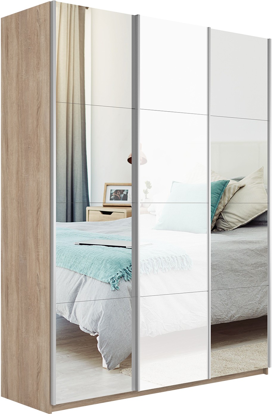 Отзывы о Столплит Шкаф-купе Прайм 3-х дверный Зеркала/Стекло белое/Доводчики 210х57х230 Ясень Анкор светлый