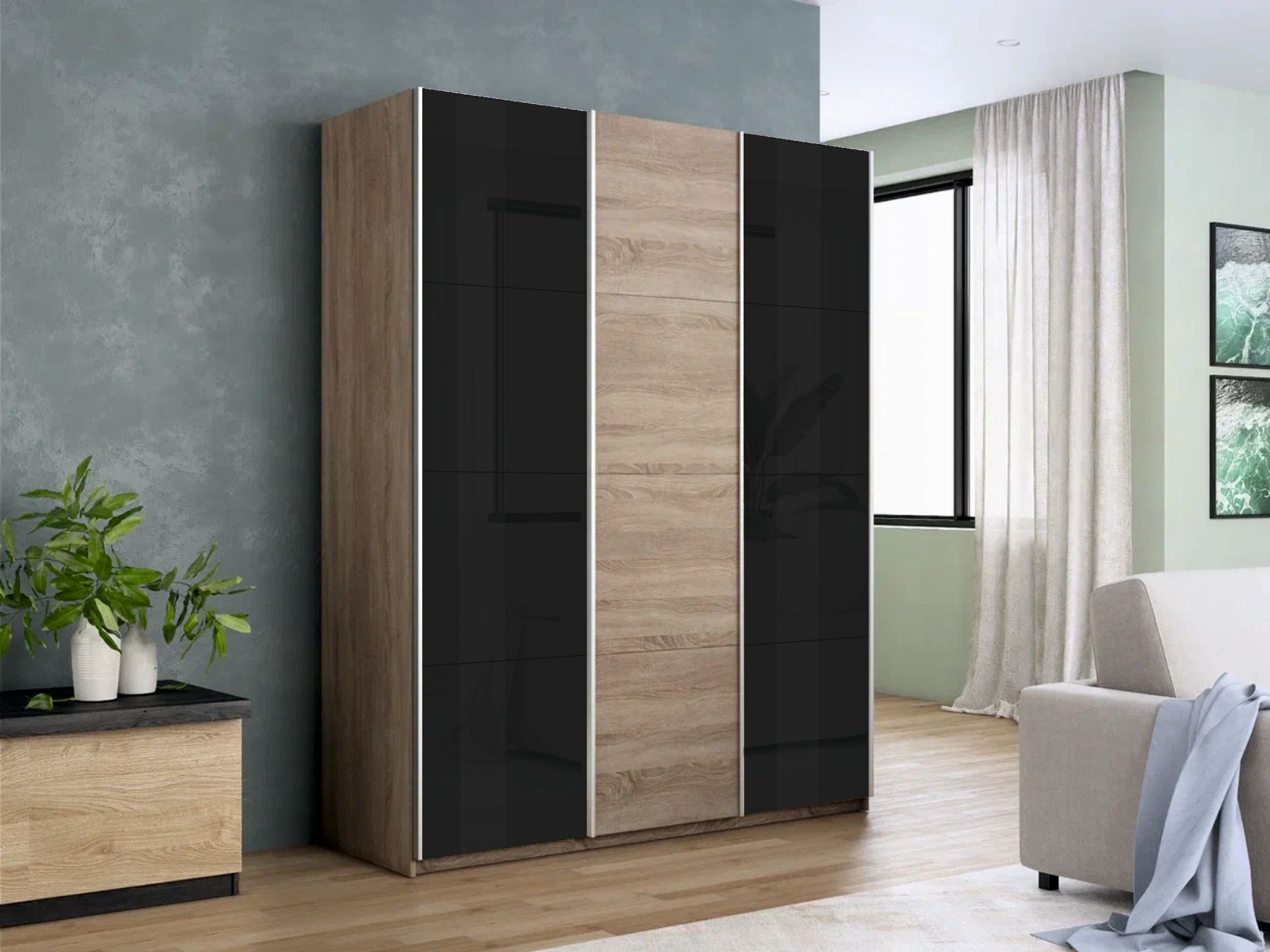 Отзывы о Столплит Шкаф-купе Прайм 3-х дверный Стекла черные/ДСП/Доводчики 180х57х230 Дуб сонома