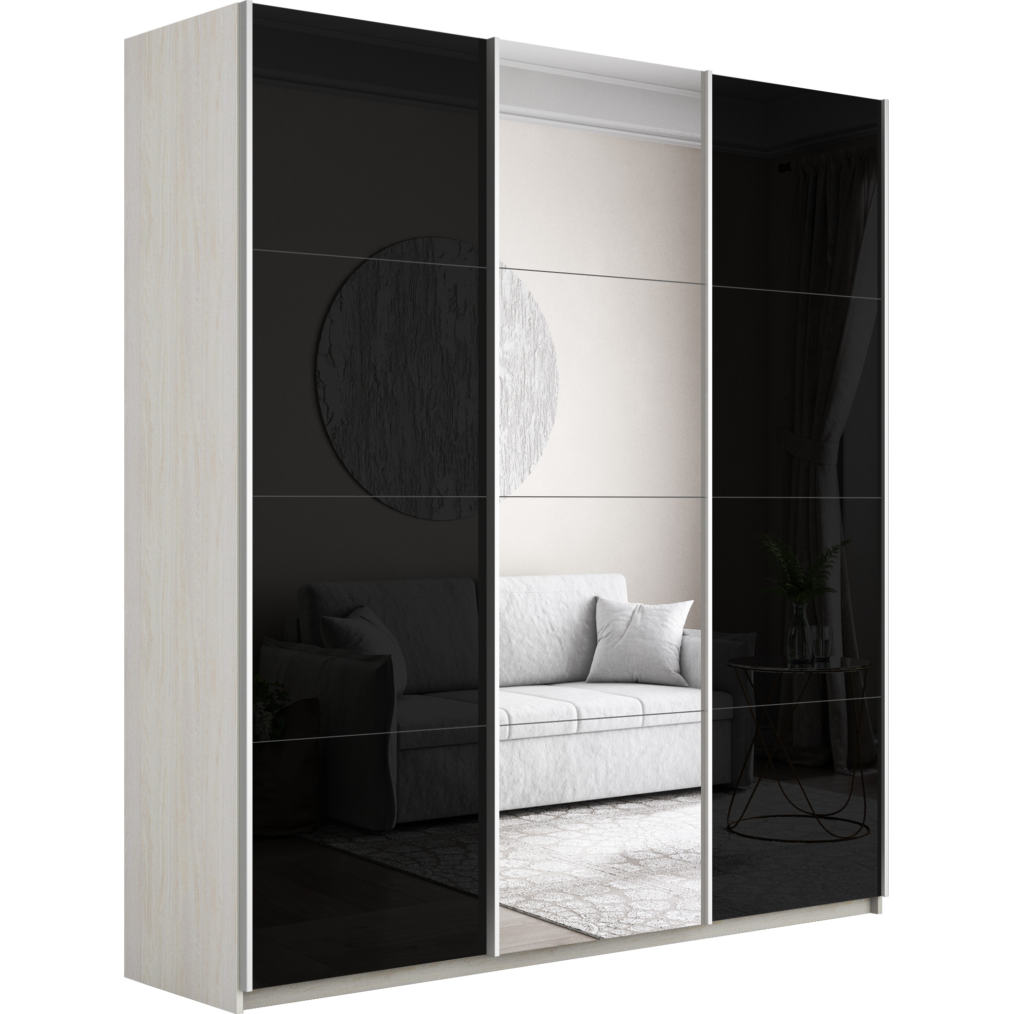 Отзывы о Столплит Шкаф-купе Прайм 3-х дверный Стекла черные/Зеркало/Доводчики 180х57х230 Ясень Анкор светлый