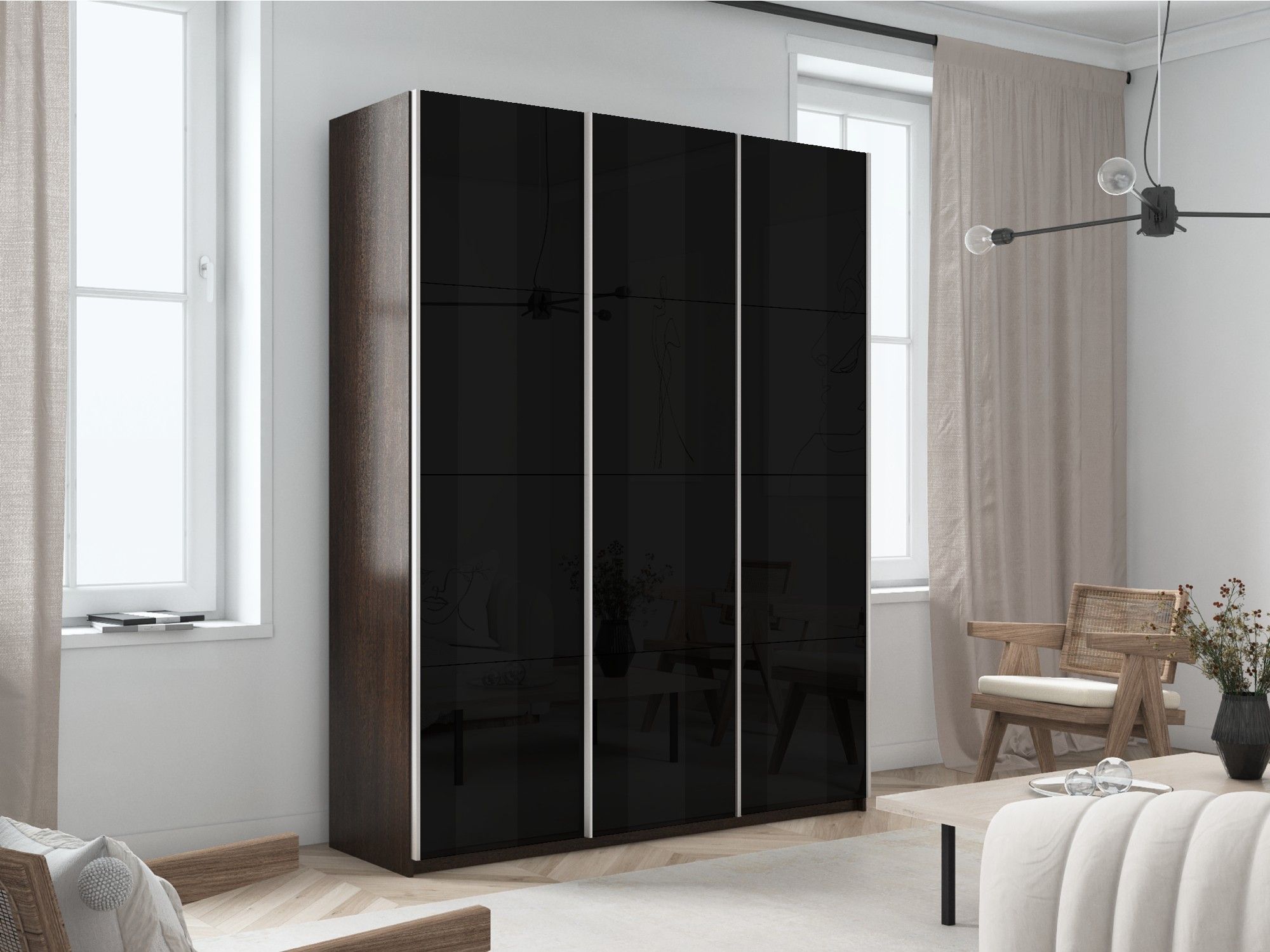 Отзывы о Столплит Шкаф-купе Прайм 3-х дверный Стекла черные/Доводчики 180х57х230 Венге