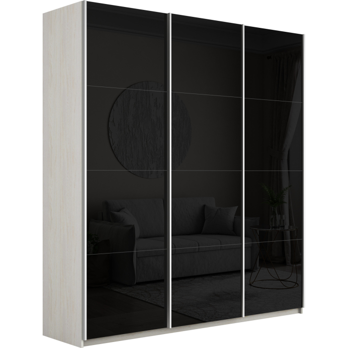 Отзывы о Столплит Шкаф-купе Прайм 3-х дверный Стекла черные/Доводчики 180х57х230 Ясень Анкор светлый