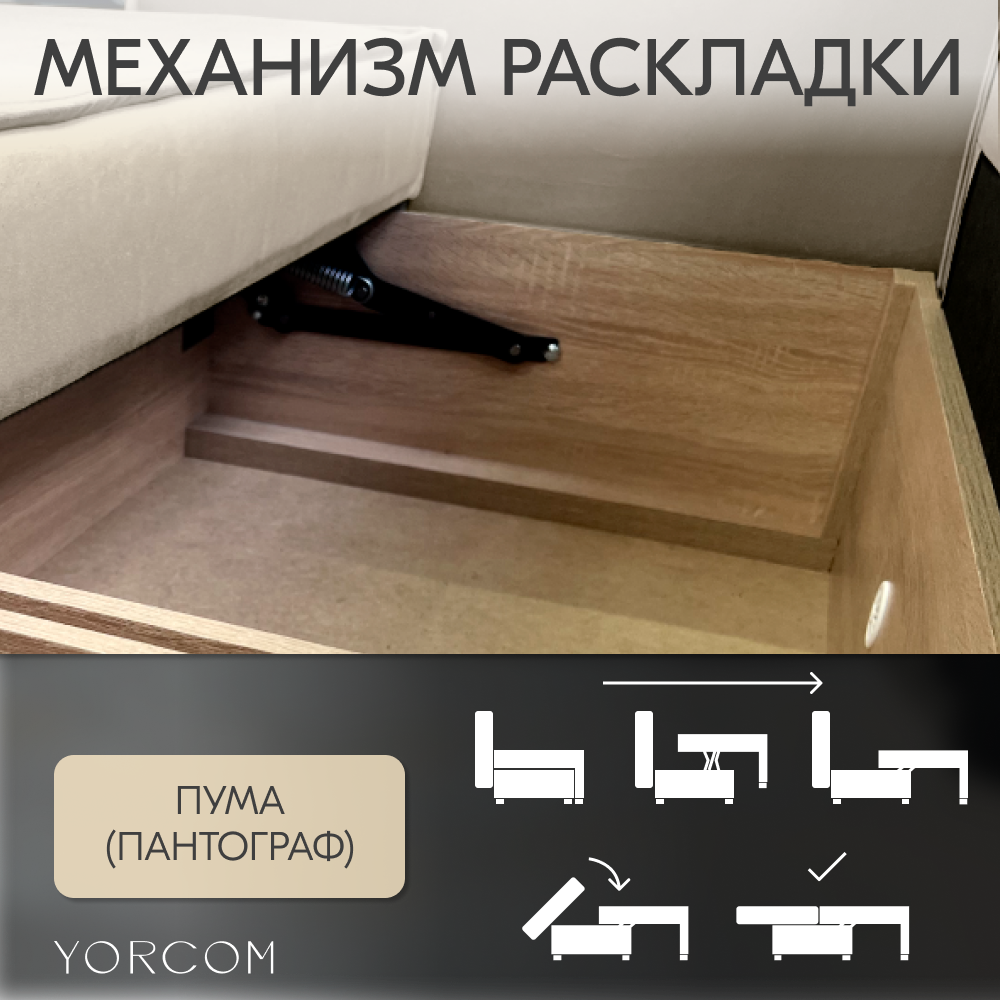 Обивка выполнена из качественных тканей, которые обеспечивают долговечность и простоту ухода.