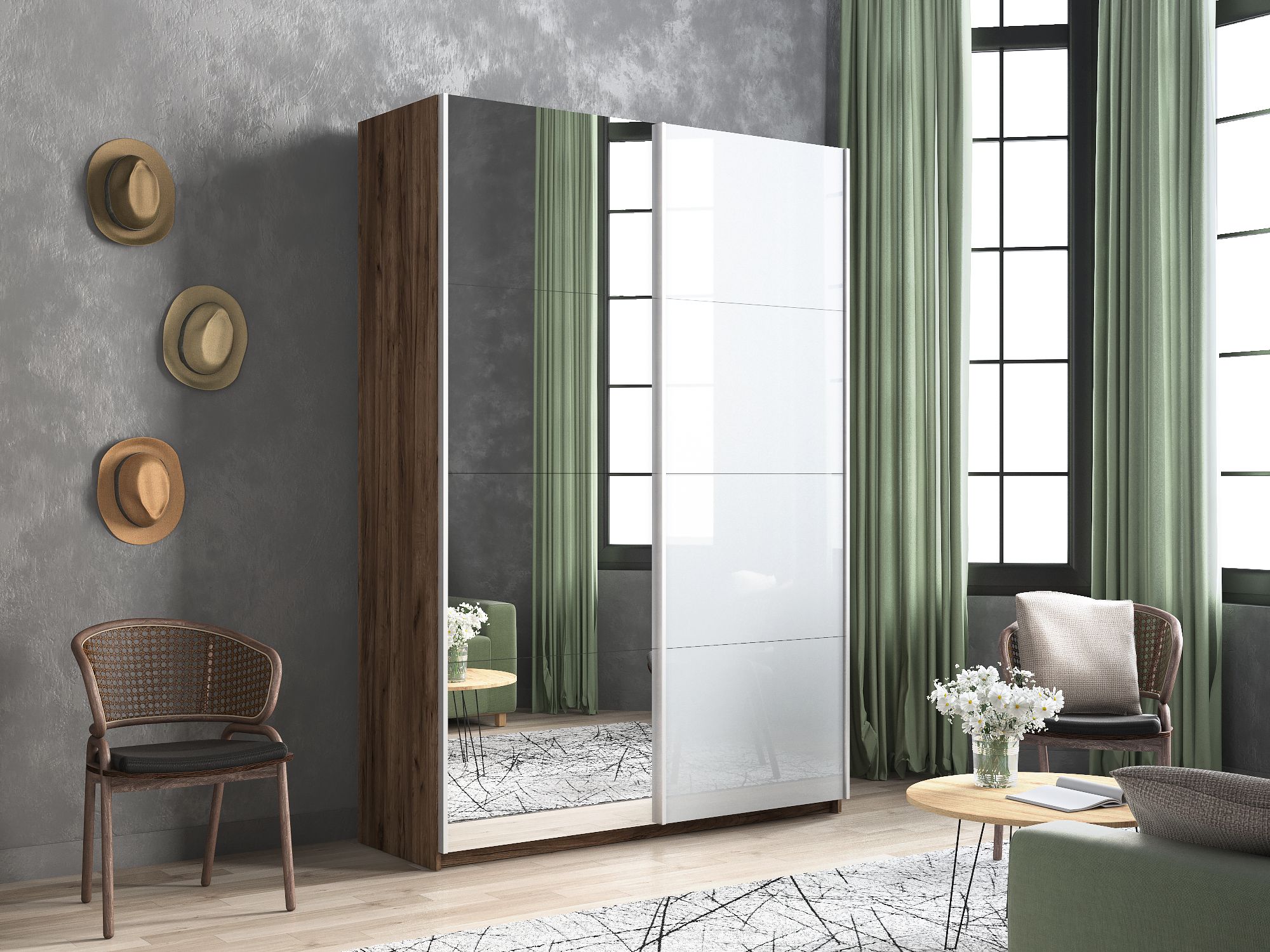 Отзывы о Столплит Шкаф-купе Прайм 2х дверный Зеркало/Белый Глянец 140х57х230 Дуб/крафт/табак