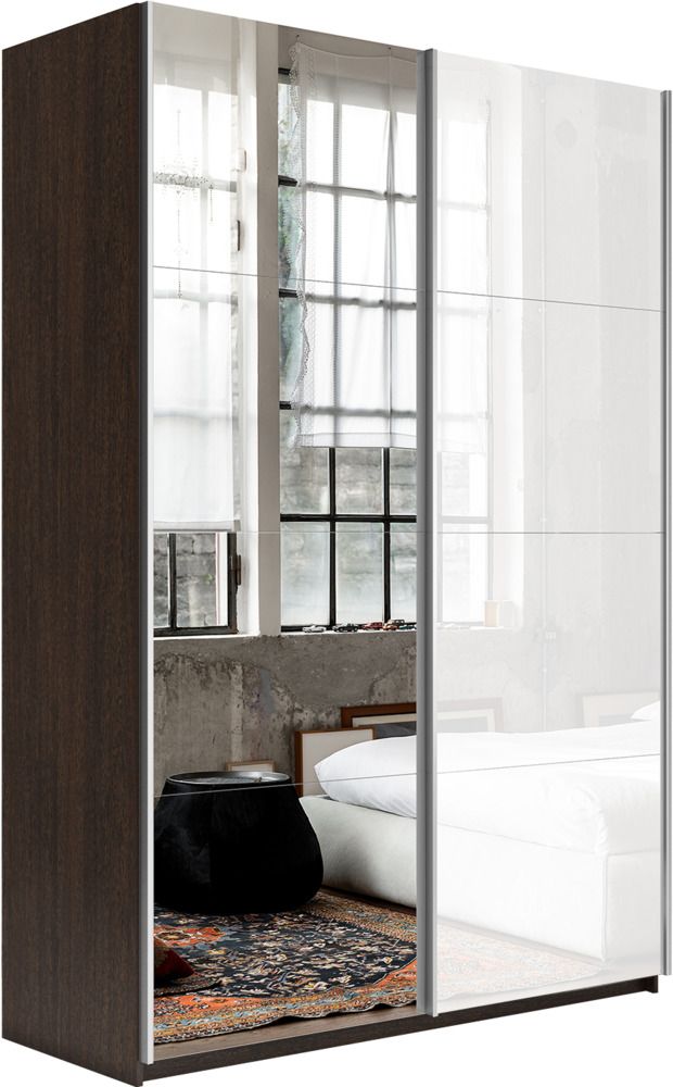 Отзывы о Столплит Шкаф-купе Прайм 2х дверный Зеркало/Белый Глянец 160х57х230 Венге