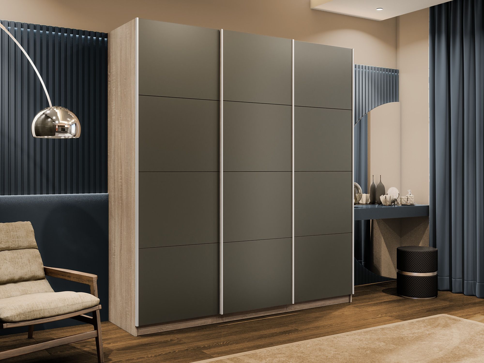 Отзывы о Столплит Шкаф-купе Прайм 3-х дверный Стекла хаки/Доводчики 210х57х230 Дуб сонома