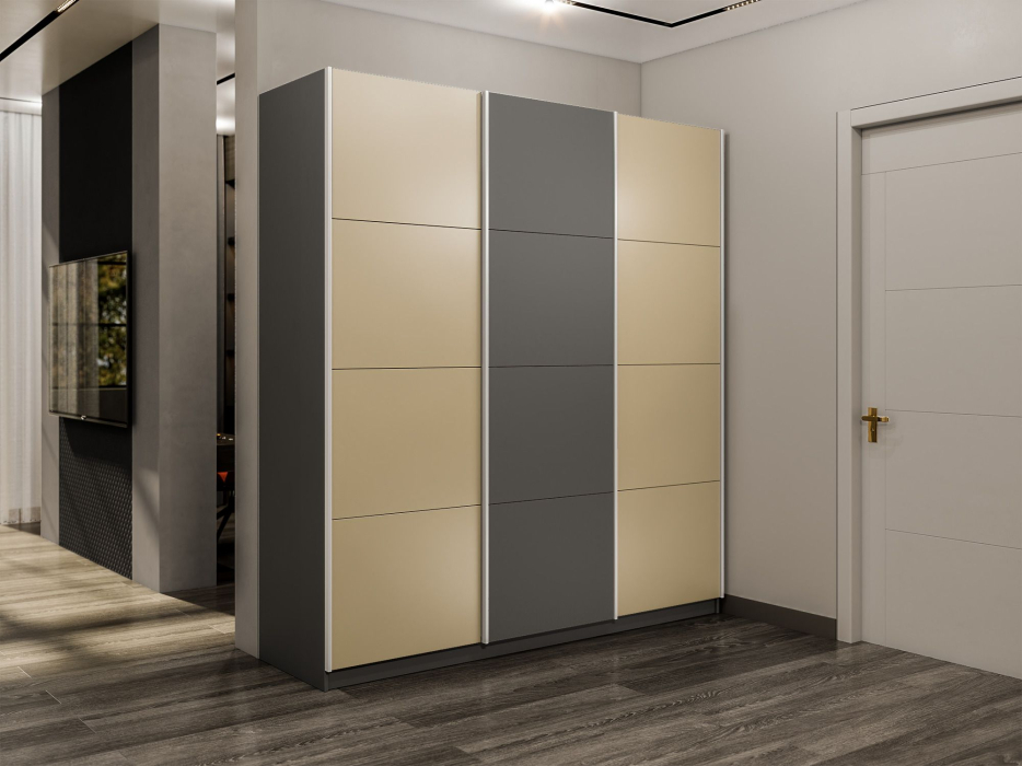 Отзывы о Столплит Шкаф-купе Прайм Широкий 3-х дверный Стекла фисташка/ДСП/Доводчики 240х57х230 Диамант серый