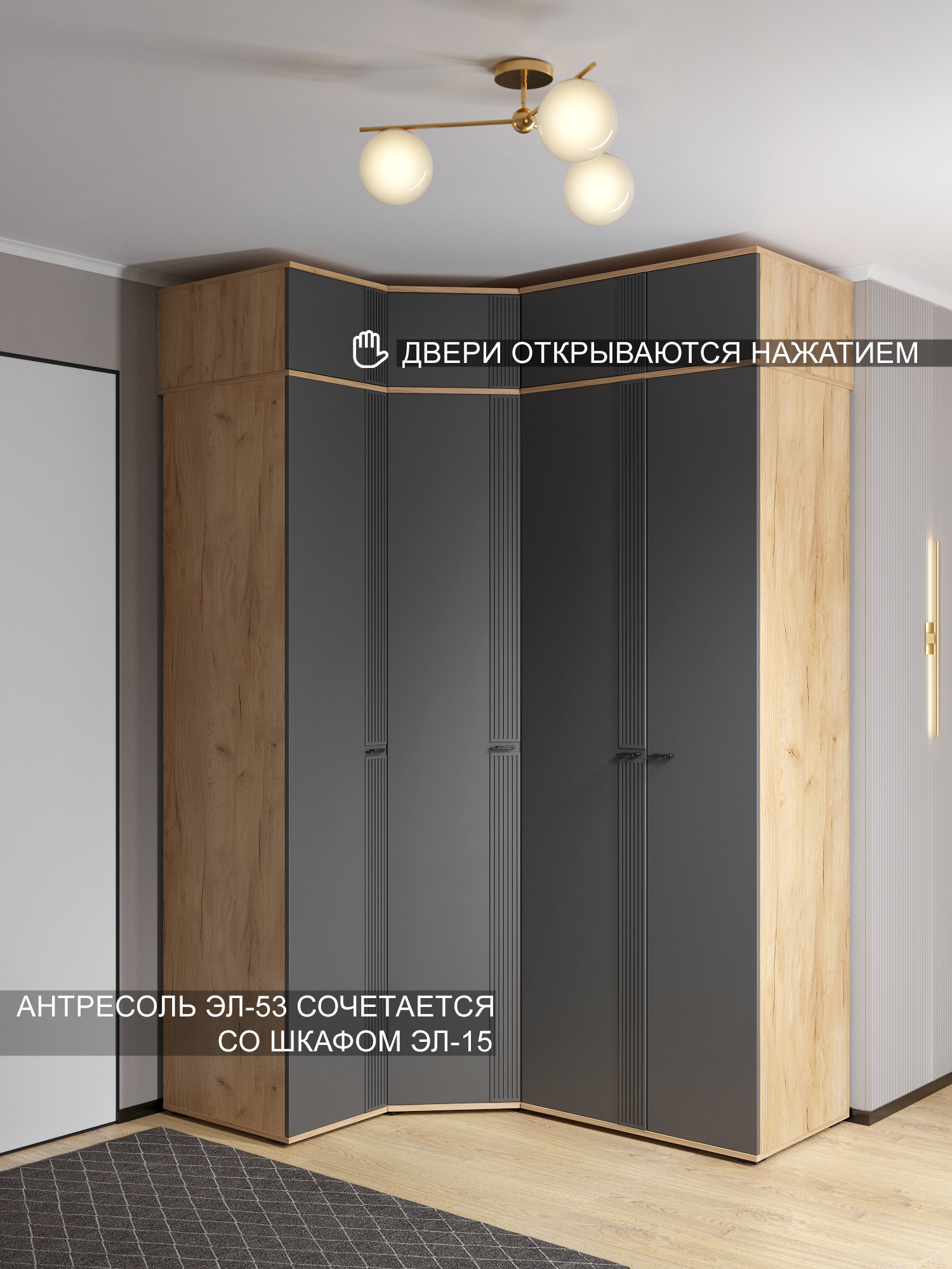 Антресоль Эмилия ЭЛ-53: стильное и функциональное решение для хранения. Антресоль Эмилия ЭЛ-53 — это идеальное дополнение к пеналу ЭЛ-15К, которое поможет организовать пространство и добавить интерьеру современный акцент. Основные характеристики: Размеры: 402х300х572 мм (ширина/высота/глубина). Цвета: сочетание натуральных оттенков и современного дизайна. Материалы: фасад из МДФ 16 мм, корпус из ЛДСП 16 мм. Преимущества антресоли Эмилия ЭЛ-53: Функциональность: навесная система хранения, которая отлично дополняет пенал ЭЛ-15К. Удобство использования: дверцы с открыванием нажатием для легкого доступа к вещам. Универсальная сборка: легко монтируется и адаптируется под ваши потребности. Современный дизайн: сочетание цветов «дуб крафт золотой» и «графит» впишется в любой интерьер., Фурнитура: петли с доводчиками. Доставка и сборка: мебель поставляется в разобранном виде, в надежной упаковке, с подробной инструкцией по сборке. Сборка осуществляется самостоятельно или с привлечением специалистов.