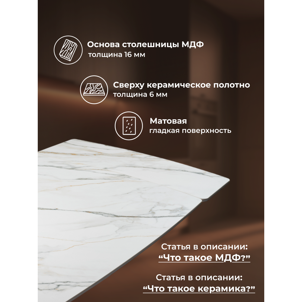 Отзывы о Столплит Керамический стол Готланд белый мрамор