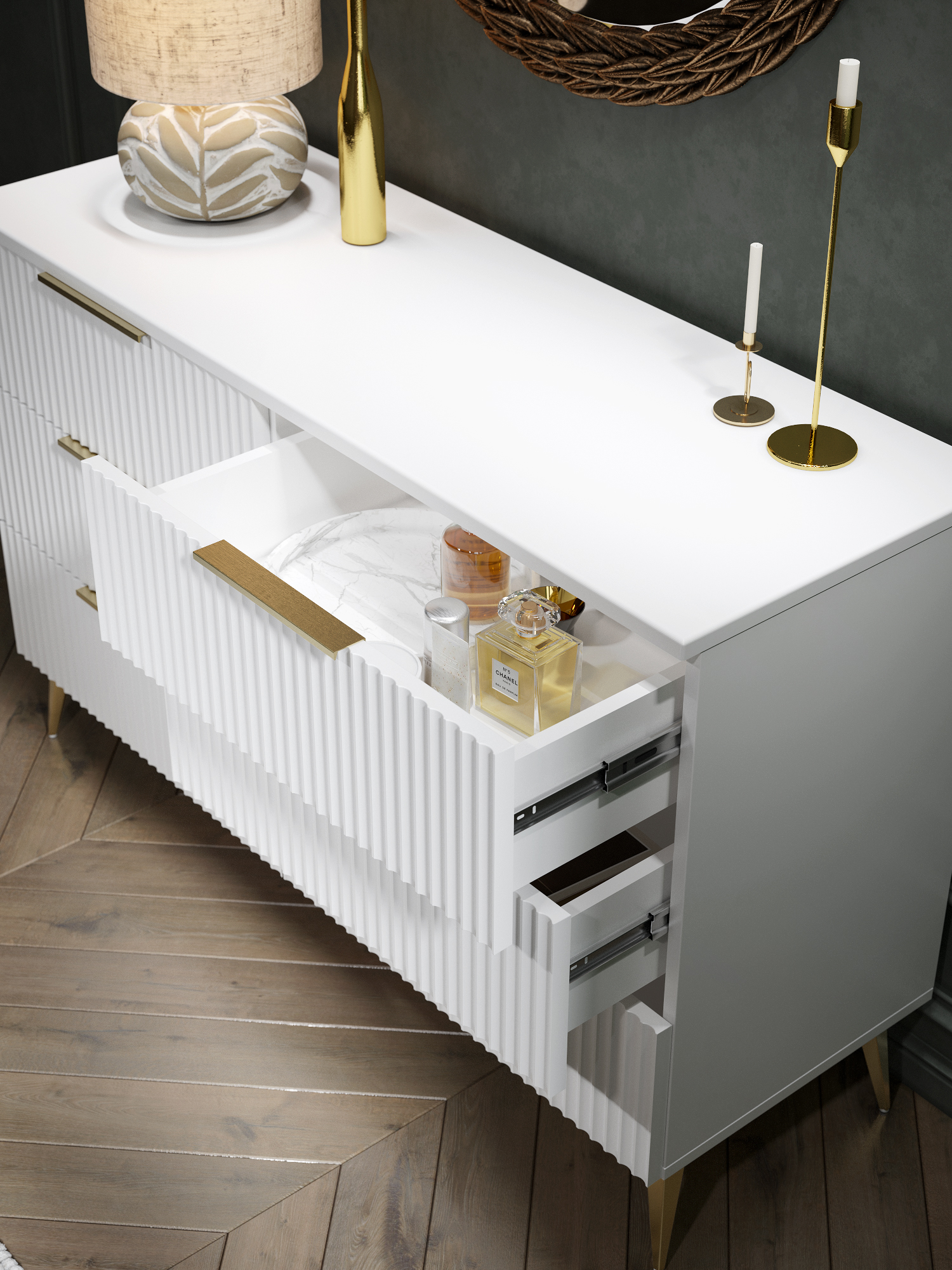 Комод Афина АФ-05 – это стильная и функциональная модель с рельефными фасадами, которая отлично впишется в современный интерьер.
