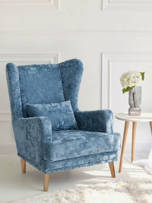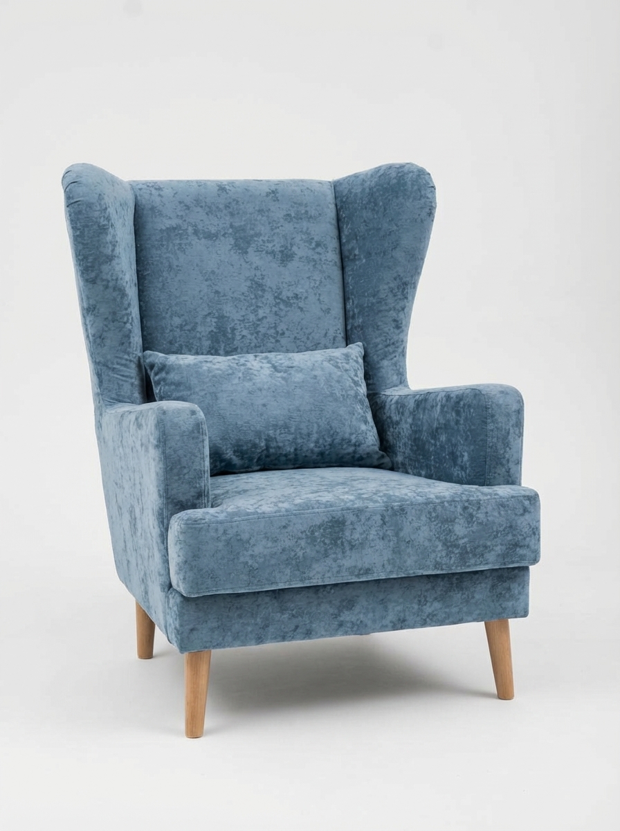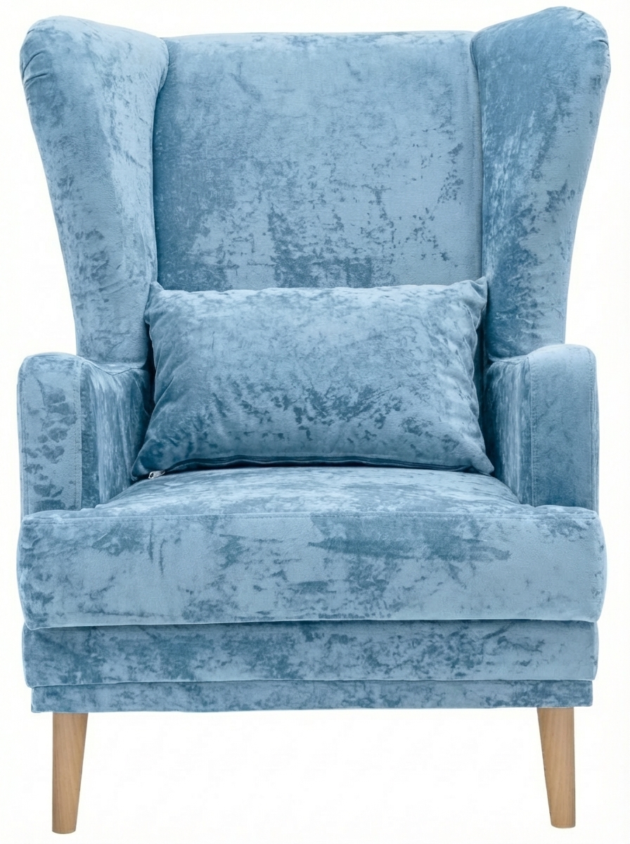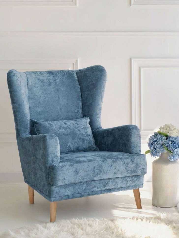Мягкое кресло Вегас сделано из фанеры и не содержит вредных веществ и материалов, что делает ее безопасной для здоровья и безопасной для окружающей среды. Ткань велюр Crush. Наполнитель ППУ имеет несколько преимуществ перед другими материалами, используемыми в производстве мебели. Во-первых, он обладает высокой упругостью и комфортом, что делает его идеальным для создания мягкой мебели и подушек. Во-вторых, ППУ является долговечным материалом, который не теряет своих свойств со временем и не деформируется при использовании.Высокие опоры создают визуальный эффект легкости и позволяют просто и удобно совершить уборку под креслом не передвигая его. Так же большим плюсом является то, что под креслом проходит любой робот пылесос. Ножки кресла выполнены из массива березы, что делает конструкцию кресла надежной и стабильной. Мягкое кресло на ножках станет оригинальным украшением вашего дома. Выполнено в духе английского кресла с ушами. Выверенные формы спинки, мягкие подлокотники в совокупности с правильной эргономикой посадки и укутывающими боковинами сделают кресло любимцем домочадцев и ваших гостей. Мебель для дома. Мягкая подушка в комплекте способствует более комфортному пребыванию в каминном кресле. Плотное соединение нитей препятствует образованию «зацепок» и выбивающихся ниток, не растягивается. Выдерживает нагрузку до 150 кг. Просим обратить внимание, что опоры могут быть вложены внутрь подушки. Классическое широкое кресло - это не только универсальная и стильная мебель, но и функциональное дизайнерское решение для любого помещения. Может быть использовано в разных комнатах, включая гостиную или кухню, у камина для комфортного размещения гостей, в спальню для релаксации, отдыха и чтения книг. В детской комнате можно разместить кресло и использовать для кормления или укачивания детей. Благодаря универсальному яркому дизайну данный предмет мебели впишется в рабочий кабинет, офис, салон красоты и лаунж зону, чтобы ваши клиенты могли чувствовать себя комфортно и расслабленно. Если вы ищете мебель для своей дачи или балкона, то компактное кресло станет идеальным выбором. При правильном подборе цвета ткани кресло будет гармонично смотреться в таких стилях, как: скандинавский, классический, прованс и лофт. Для полного вашего расслабления мы предусмотрели дополнительную опцию поддержки для ног у этого кресла для дома (что очень важно для профилактики заболеваний сосудов). К каждому нашему мягкому креслу вы сможете приобрести пуф в цвет кресла схожий по дизайну. Собрать тем самым полный комплект для домашнего отдыха (пуфик приобретается отдельно).Мы ответственно подходим к подбору материалов для изготовления каждого изделия. Также мы тщательно проверяем мебель перед отправкой нашим дорогим клиентам. Нам важно, чтобы вы гордились покупкой. Ведь это значит, что мы не зря каждое утро приходим на работу!В процессе эксплуатации рекомендуем периодически пылесосить обивку на минимальной мощности с использованием узкой насадки для мебели. Таким образом, вы сможете устранить с поверхности ткани пыль и шерсть животных. Слабые загрязнения можно удалить влажными салфетками, допустимо применение мыльного раствора с нейтральным Ph (например, детское мыло). Также для продления ощущения новизны и лоска ткани рекомендуем время 