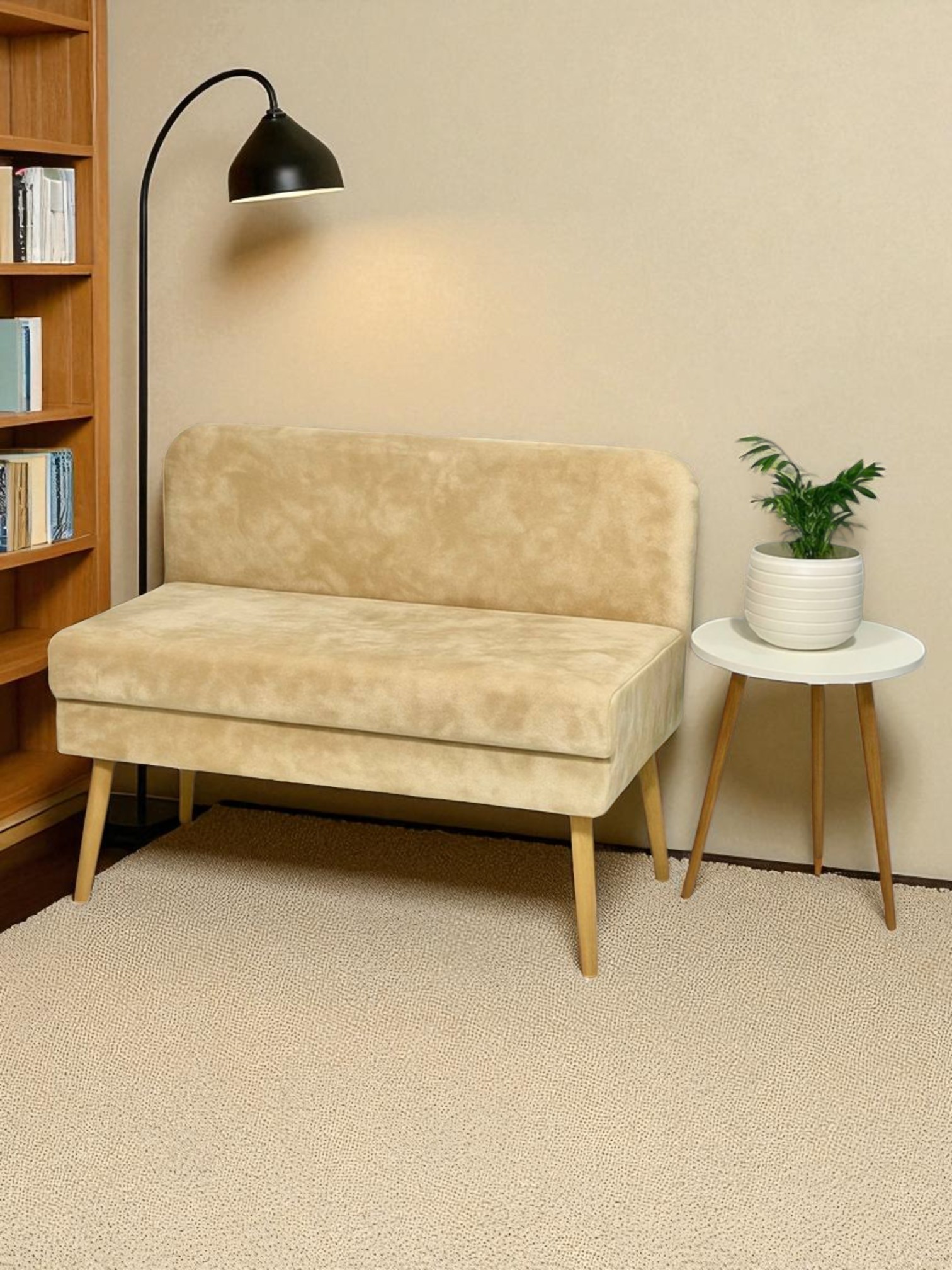Диван кушетка с ящиком Эда, плюш (Бежевый)
