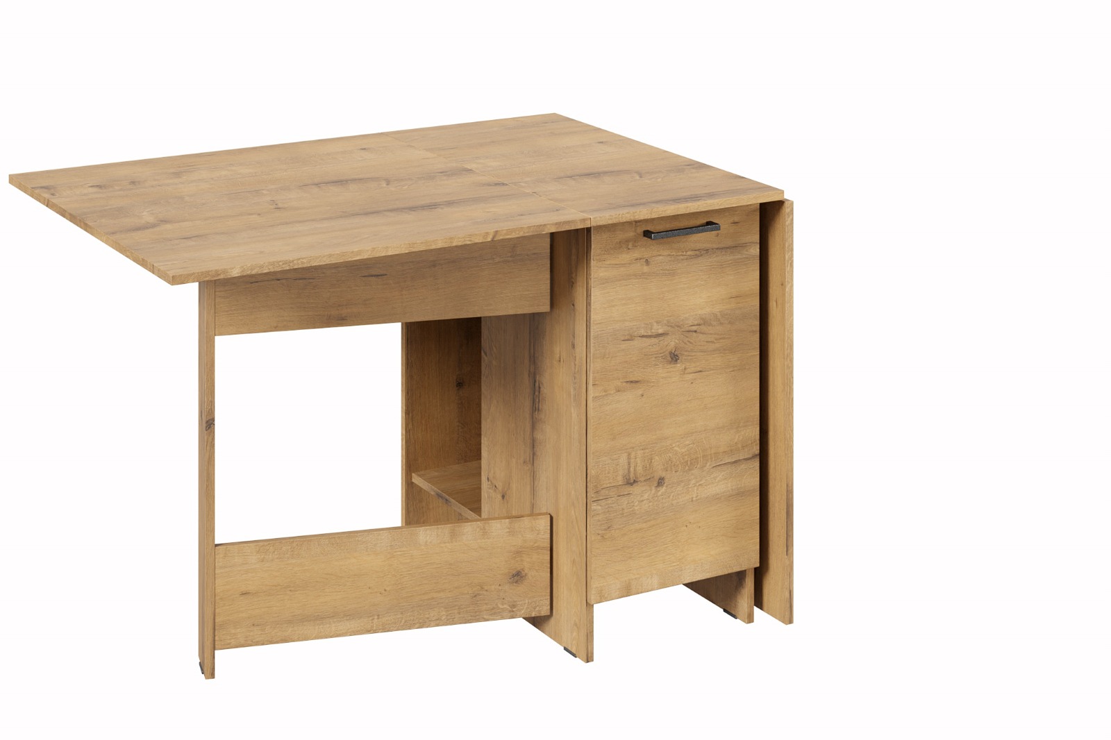 Раскладной стол книжка Атлант 2 с распашным фасадом станет эффектным и практичным элементом современного интерьера. Механизм трансформации поможет при необходимости легко организовать дополнительные посадочные места. Есть место под системный блок ПК.
