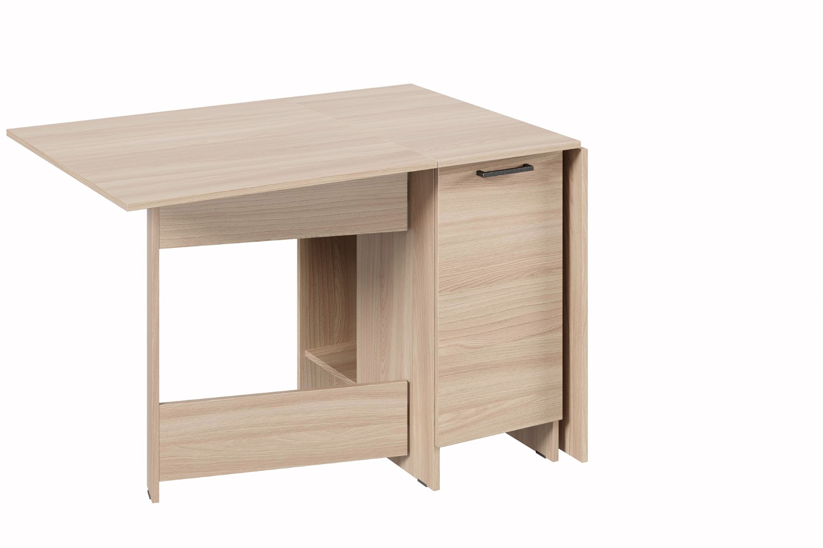 Раскладной стол книжка Атлант 2 с распашным фасадом станет эффектным и практичным элементом современного интерьера. Механизм трансформации поможет при необходимости легко организовать дополнительные посадочные места. Есть место под системный блок ПК.