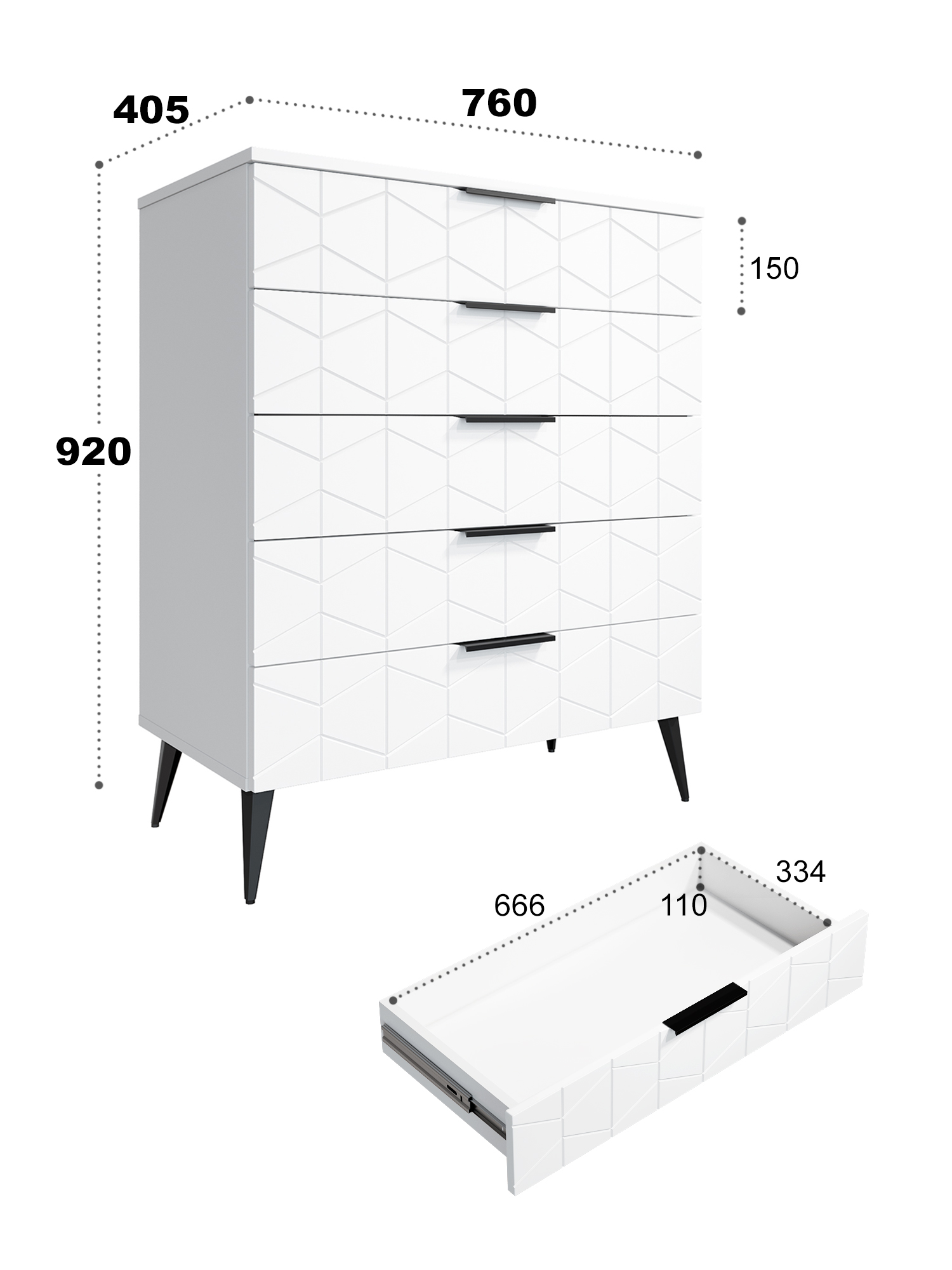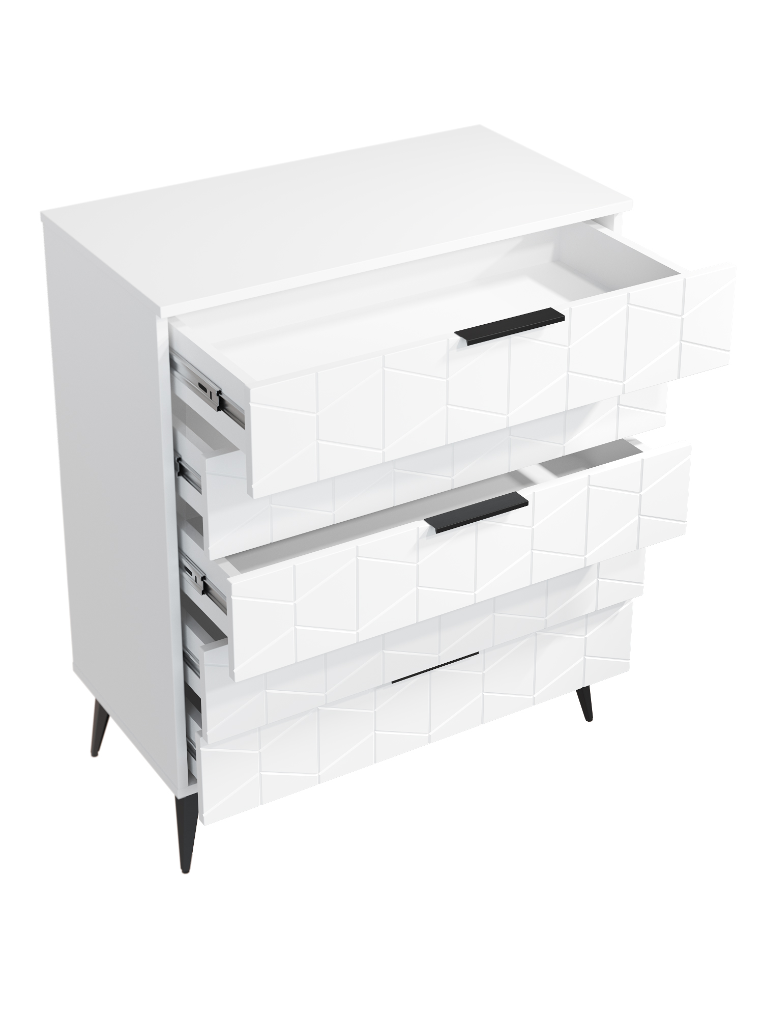 Пять выдвижных ящиков на телескопических направляющих