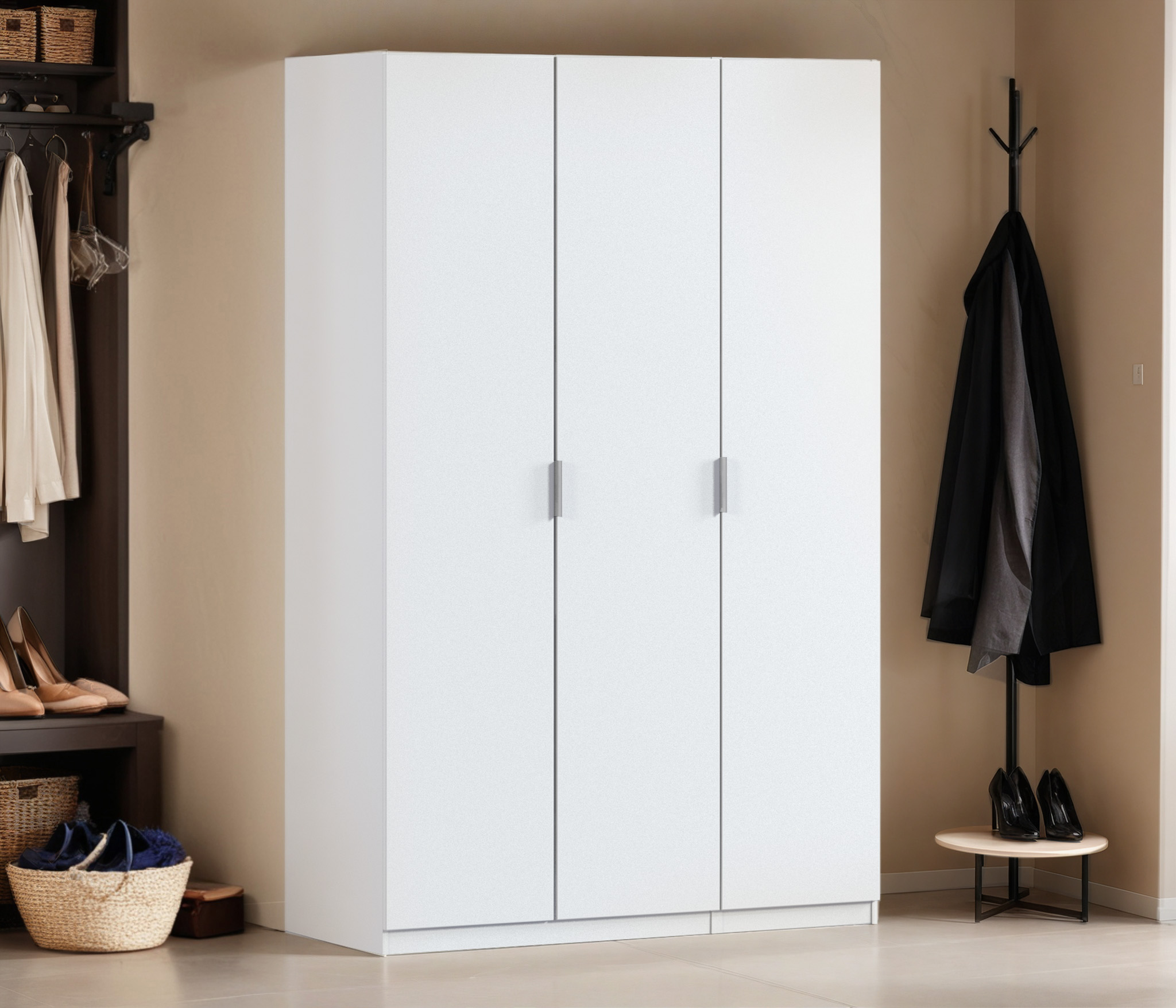 Шкаф трехдверный Макс 1500 мм, вариант №4 (ЛДСП/МДФ) (Белый)